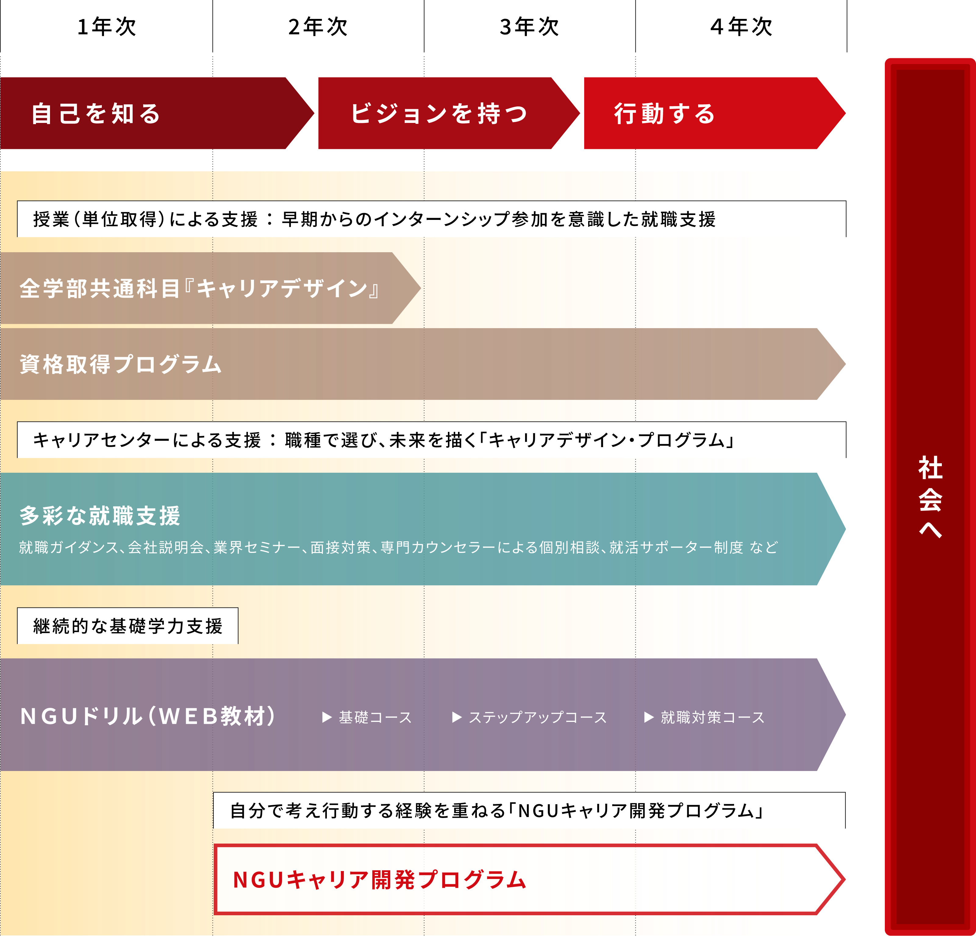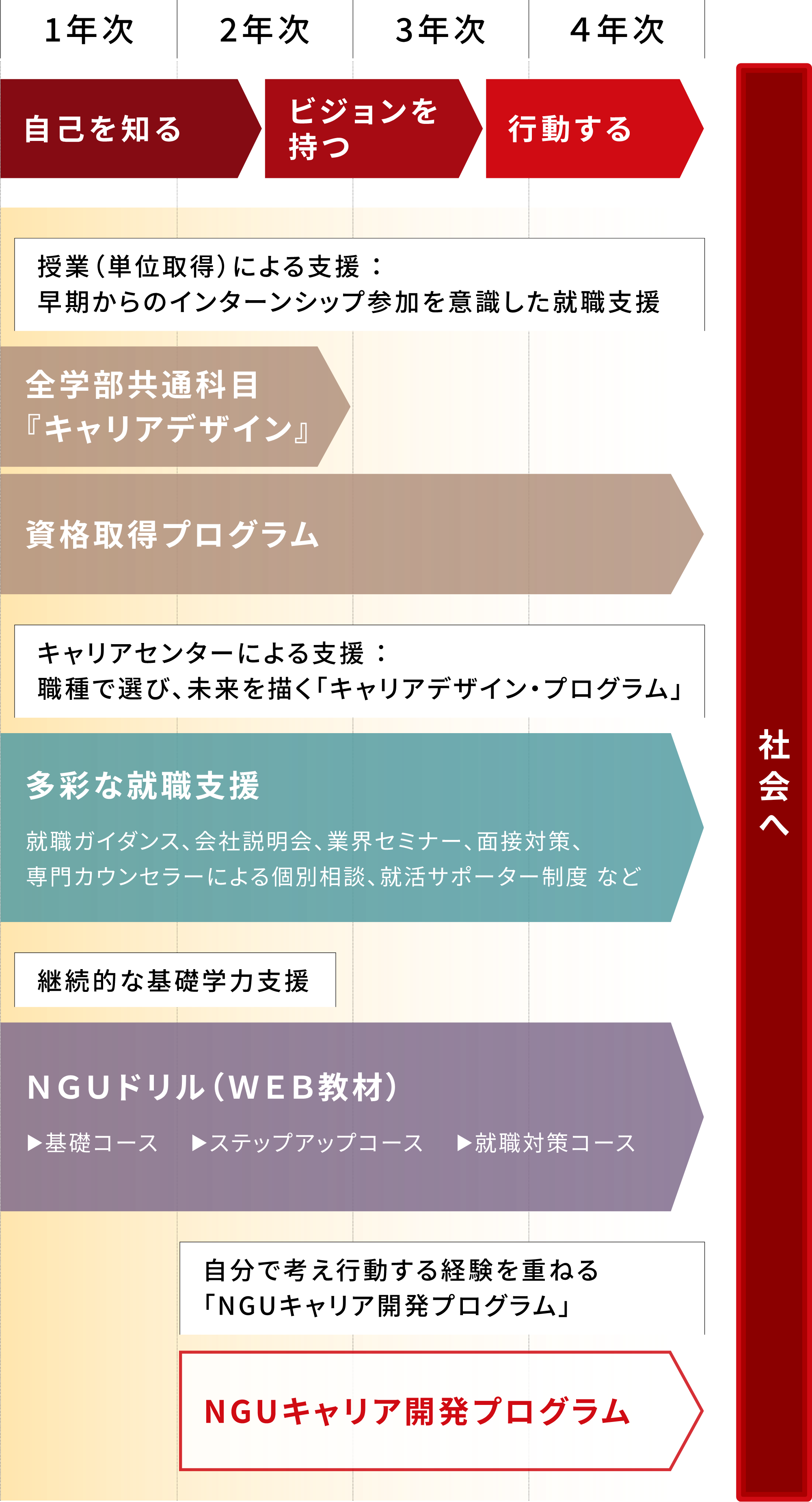 自分は将来どんな仕事に就くのだろう。自分はどんな仕事に向いているのだろう。大学へ入学してからの自分、4年後、そして10年後の未来を見据えられるように。就職に強い名古屋学院は、すべての方を応援しています。
