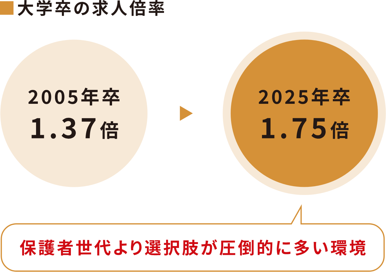 誰もが社名を知っているような大企業や銀行等の統合などが起きている昨今、保護者世代のように「この会社にさえ入れば一生安泰」という時代ではなくなってきました。社会環境の変化は激しく、将来の予測が難しい「VUCA※の時代」と呼ばれる現在。環境の変化に伴い、企業の新卒採用スタイルも大きく変化しています。