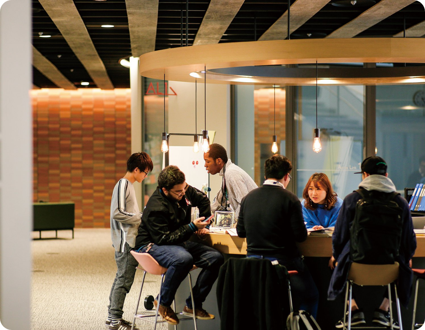 グローバル化は海外に出ていくことだけではありません。名古屋学院大学には、外国人講師が語学学習をサポートしたり、留学生とコミュニケーションを取りながら、互いの意見や思いを伝え合えたりするグローバル教育施設とその仕掛けがあり、キャンパスにいながら異文化にふれられる機会が豊富に用意されています。また他大学では、学部指定されていることが多い海外留学も全学部の学生が対象。これらの環境がグローバル化していく社会に臨機応変に対応でき、社会に出てから求められる主体性やコミュニケーション力を育んでくれます。