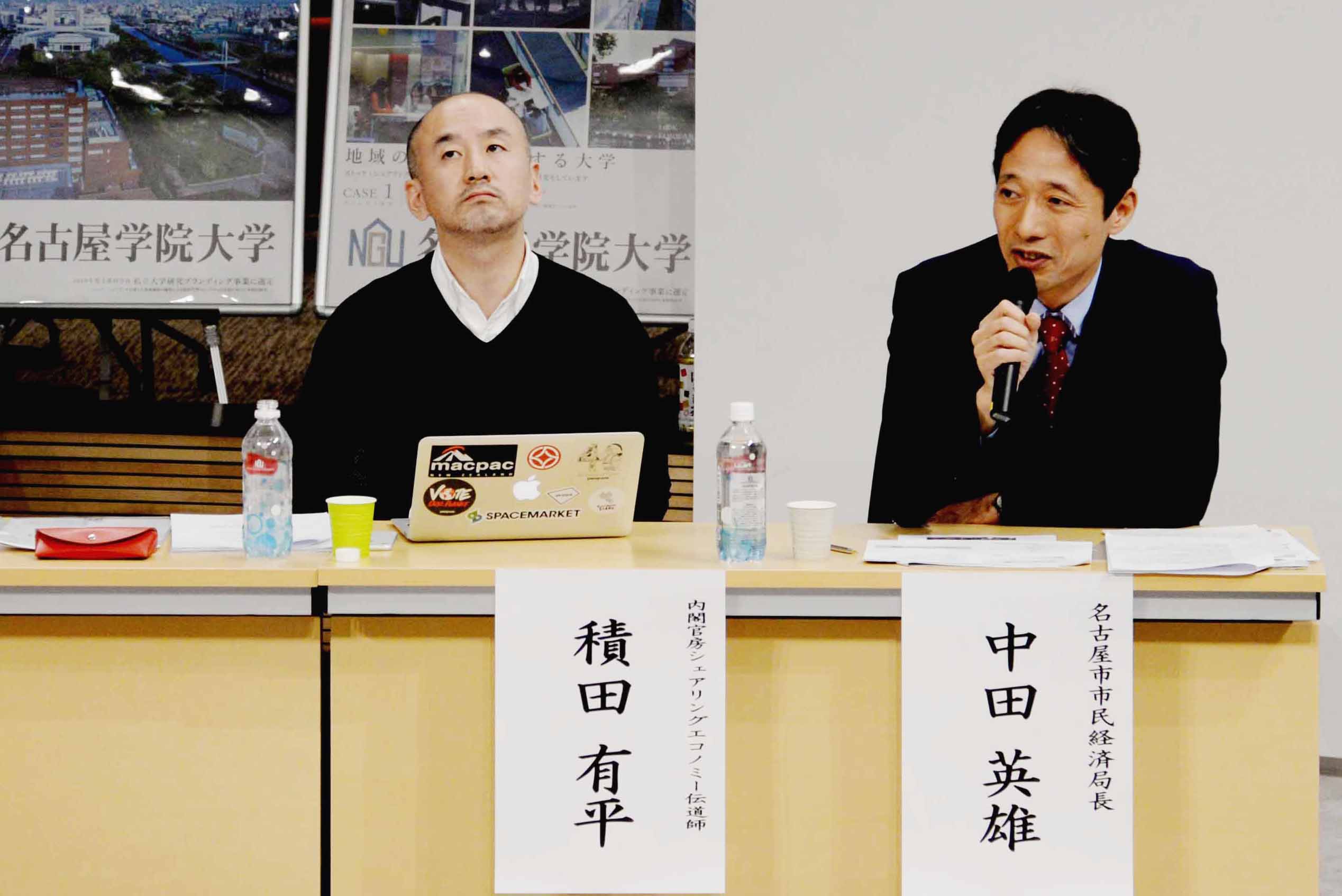 12月1日(日曜日)、名古屋キャンパスたいほう言館1Fコミュニティリンクにて「シェアリングが新世代コミュニティを実現する-その課題と展望を解く」というテーマで私立大学研究ブランディング事業キックオフ・シンポジウムを開催しました。 シンポジウムは、木村 俊幸熱田区長、名古屋学院大学小林 甲一学長の開会挨拶で始まり、第一部では名古屋学院大学 井澤 知旦現代社会学部長による開催趣旨説明の後、一般社団法人シェアリングエコノミー協会の積田 有平氏による基調講演、名古屋学院大学 澤田 景子経済学部講師、イオンモール熱田ゼネラルマネジャーの三浦 壽氏による実践報告が行われました。 積田 有平氏による基調講演では、シェアリングエコノミーの定義、ビジネスモデルが立ち上がってきた背景、市場規模、ビジネスとしての現在位置、政府のシェアエコ活用戦略、自治体の具体的活用事例など、2020年以降の動きが体系的に説明されました。実践報告では、澤田 景子名古屋学院大学経済学部講師より「ダブルケアとストックシェアリング」について、三浦 壽氏より 「イオンモール熱田との実証研究」の中間報告が行われました。