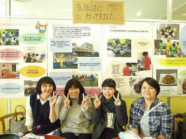 このイベントは、東北の復興支援へ熱心に取組む企業、団体、大学、自治体等の情報発信や交流促進を目的に開催されています。本学代表の赤堀くんは、宮城県女川町の水産加工会社で実際にインターンシップを体験したことをベースに、復興への課題について考え、名古屋での復興支援情報の発信や、愛知商業高校との連携事業等に取組んでいます。報告会では、彼の熱い想いを来場者へ伝えることができました。