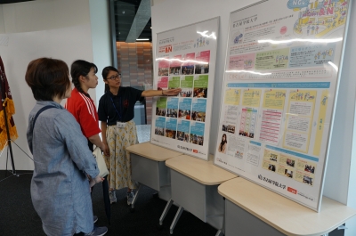 5月7月13日(土)~14日(日)、本学名古屋キャンパスたいほうにてオープンキャンパスが行われ、そこでNGUの地域連携の取組を紹介するブースを出展しました。ブース2日間で130名を超える方に訪れていただきました!ブースではパネルや資料、活動に使うグッズなどを展示し、「まちづくりとは?」「どんなことが学べるの?」「PROJECT&Nって何?」など、高校生や保護者の方の素朴な疑問にお答えしました。このブースを担当した学生のほとんどは1年生でしたが、オープンキャンパスに向けて勉強を重ねたことにより、自信を持って「チイキとつながる」魅力や楽しさをお伝えすることができました!