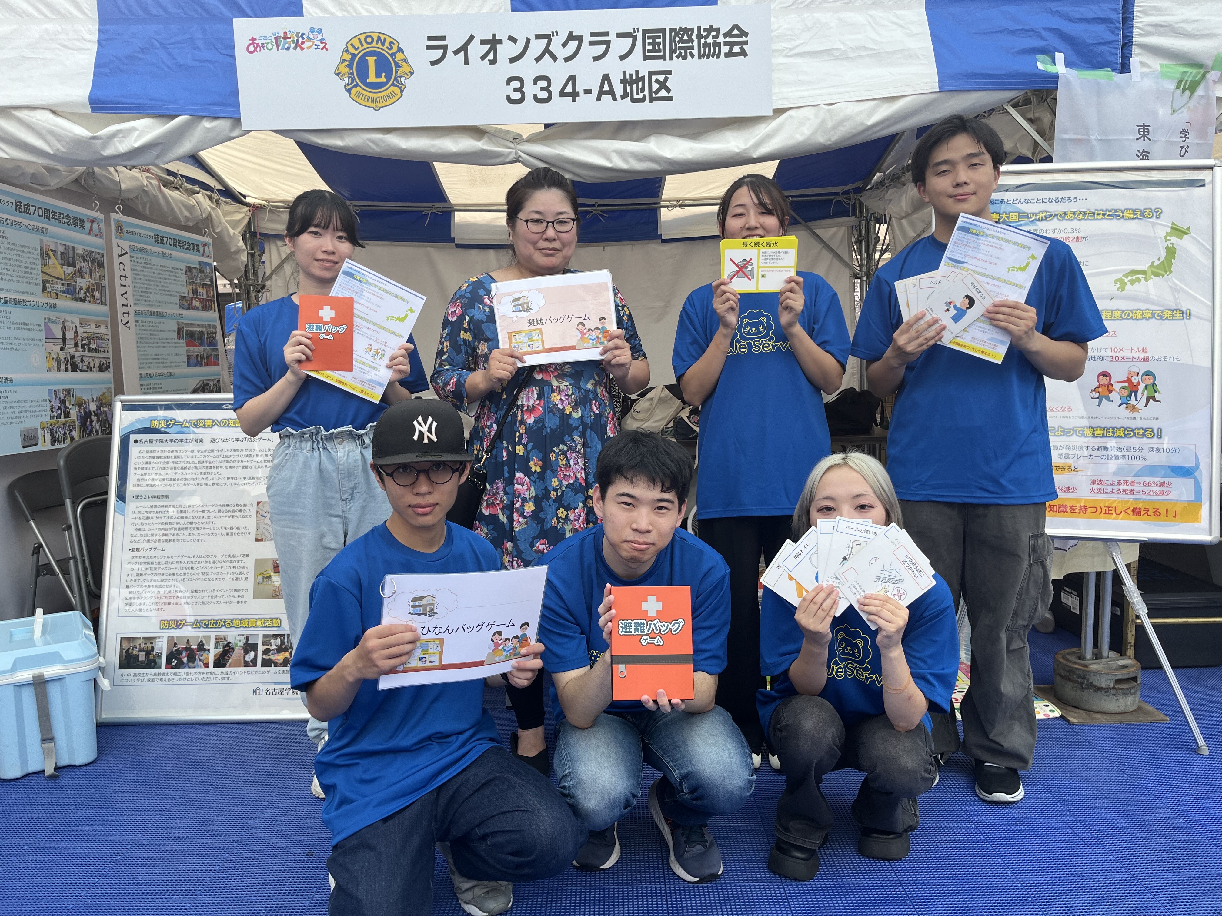 8/23(土)、栄のオアシス21で開催された親子で楽しみながら防災を学べる体験型イベント「CBC あそび防災フェス」のライオンズクラブブースに、社会連携センターサポーターの「防災啓発チーム」がブース出展しました。