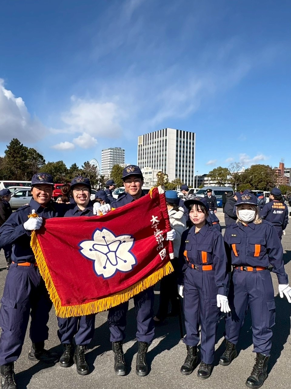 1月11日(日)10時から、ガーデンふ頭を会場として実施された名古屋市消防出初式に、本学大学生消防団が参加しました。