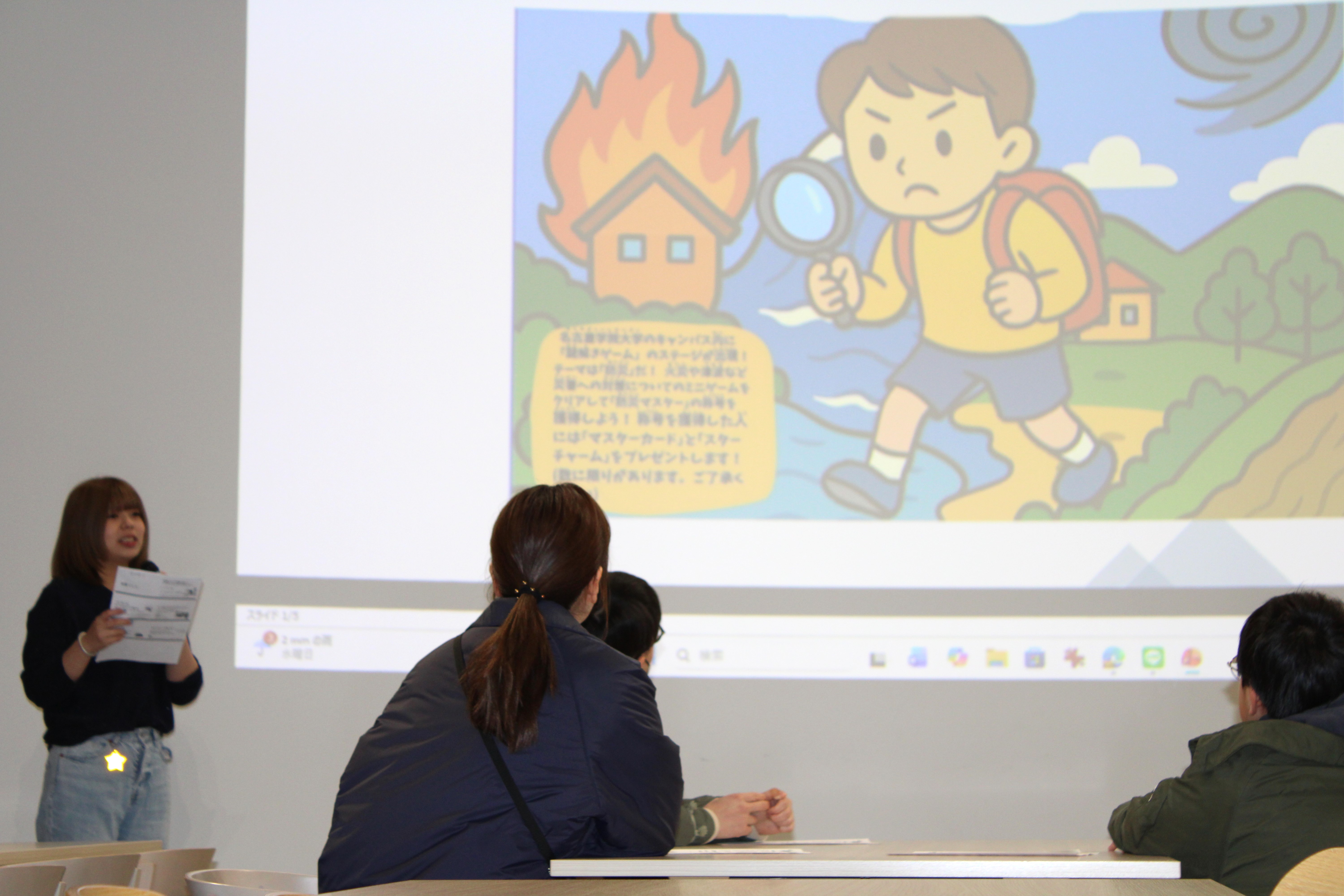 このイベントは2024年度の「まちづくり提言コンペ」(名古屋)で優秀賞に選ばれた土上美心さん(経営学部)の提言「防災謎解きゲーム~これであなたも防災探偵!?~」を原案として、学生チームによって企画された地域貢献イベントです。まちづくり提言コンペの優秀案を原案とする地域貢献イベントの開催は4年連続4回目の開催となります。