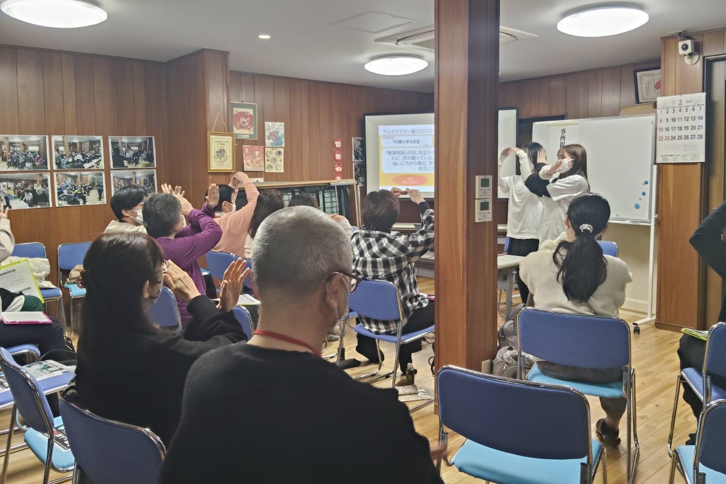2月27日、有限会社丸八介護サービスにてケアマネジャーを対象とした「ヤングケアラー研修」を実施しました。BE HAPPYの学生メンバーは「ヤングケアラー版クロスロードゲーム」のデモ体験(問題文をスライドに映して実施)の進行を担当しました。介護分野では居宅介護事業所の特定事業所加算の算定要件の一つとして「ヤングケアラー研修」の受講が位置付けられていますが、研修を実施できる講師が限られていることから、参加者からは「貴重な機会だった」との声が聞かれました。デモ体験では、家庭の状況を把握しながら支援にあたるケアマネジャーの視点からの議論が行われました。介護分野の専門職は、家庭内でケアを担う子どもの存在に気づき、支援につながる重要な立場を担う可能性が高く、地域での支援力向上につながる重要な機会となりました。
