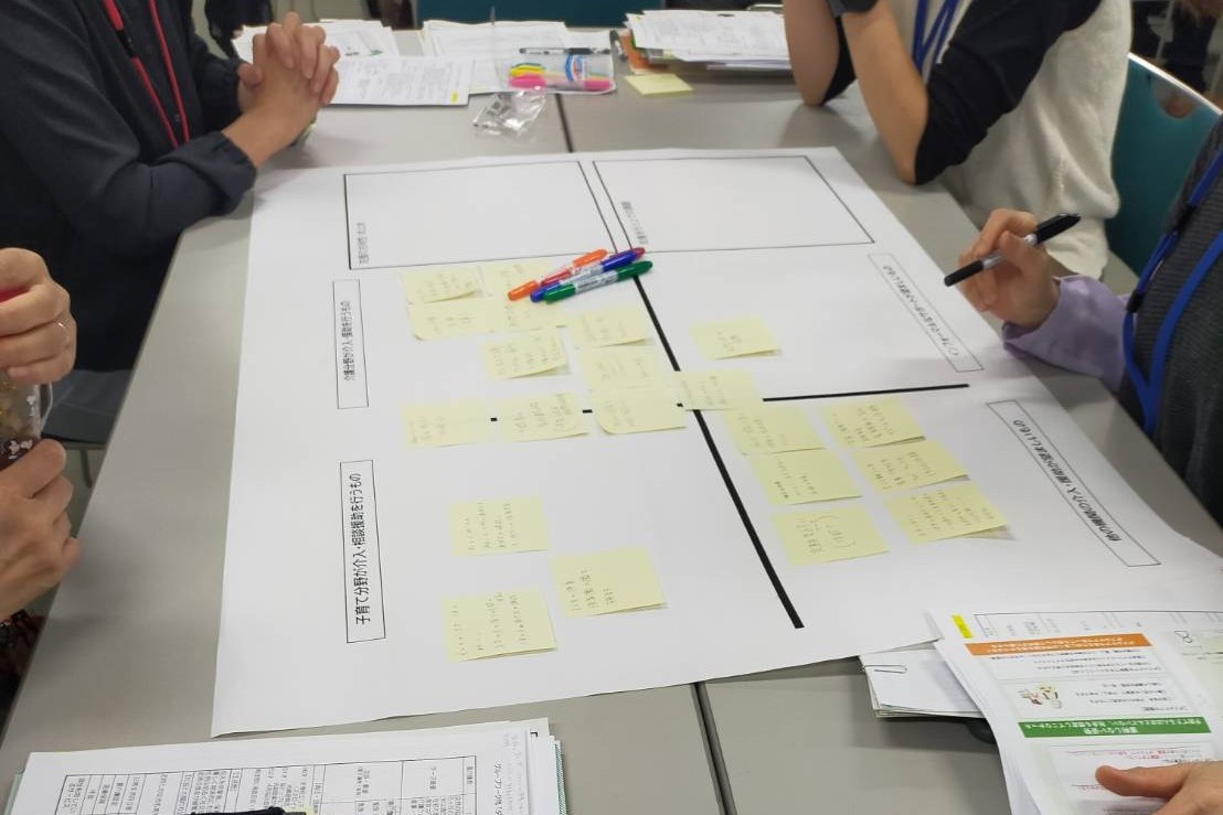 本研修は、子育てや介護に関わる支援者を対象に行われ、8月22日に実施された「当事者理解編」に続く、「事例検討編」として開催されました。当日は、ダブルケア当事者がご自身の最も大変だった時期の経験を語った後、参加者がグループに分かれて、当事者の抱える課題やフォーマル、インフォーマル双方の支援のあり方について検討を行いました。参加者からは、「当事者の体験談でダブルケアの現実を知り、衝撃を受けた」「家族は資源ではなく、支える対象であることが理解できた」、「相談対応では、自分の担当部門以外の情報を持っていることの大切さを感じた」といった感想が寄せられました。