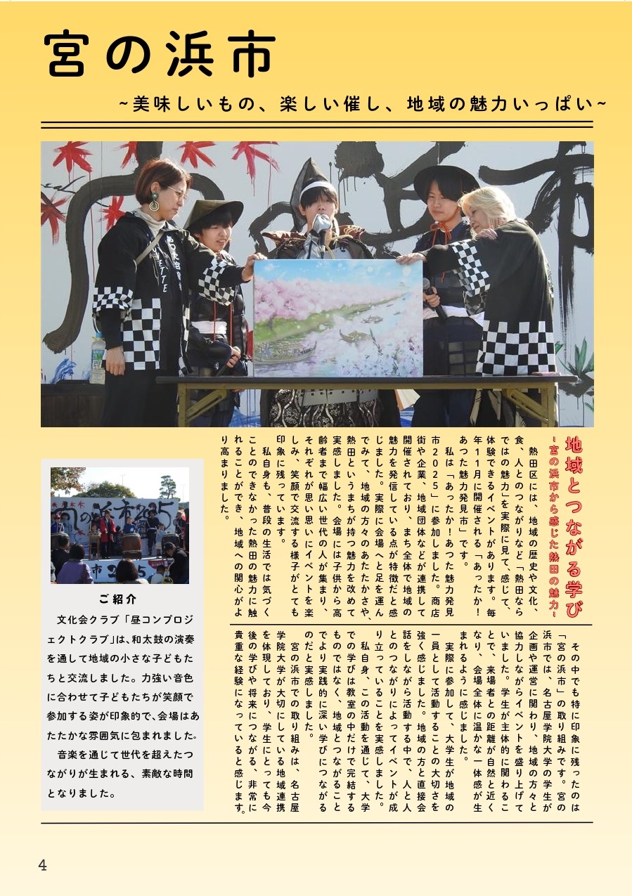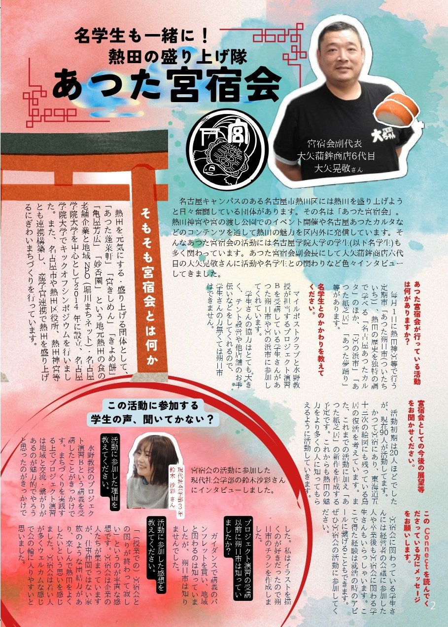 社会連携センターの広報誌で学生作成の冊子「Connect」掲載の、熱田区と瀬戸市に関する情報をピックアップして掲載します。ご参考ください。