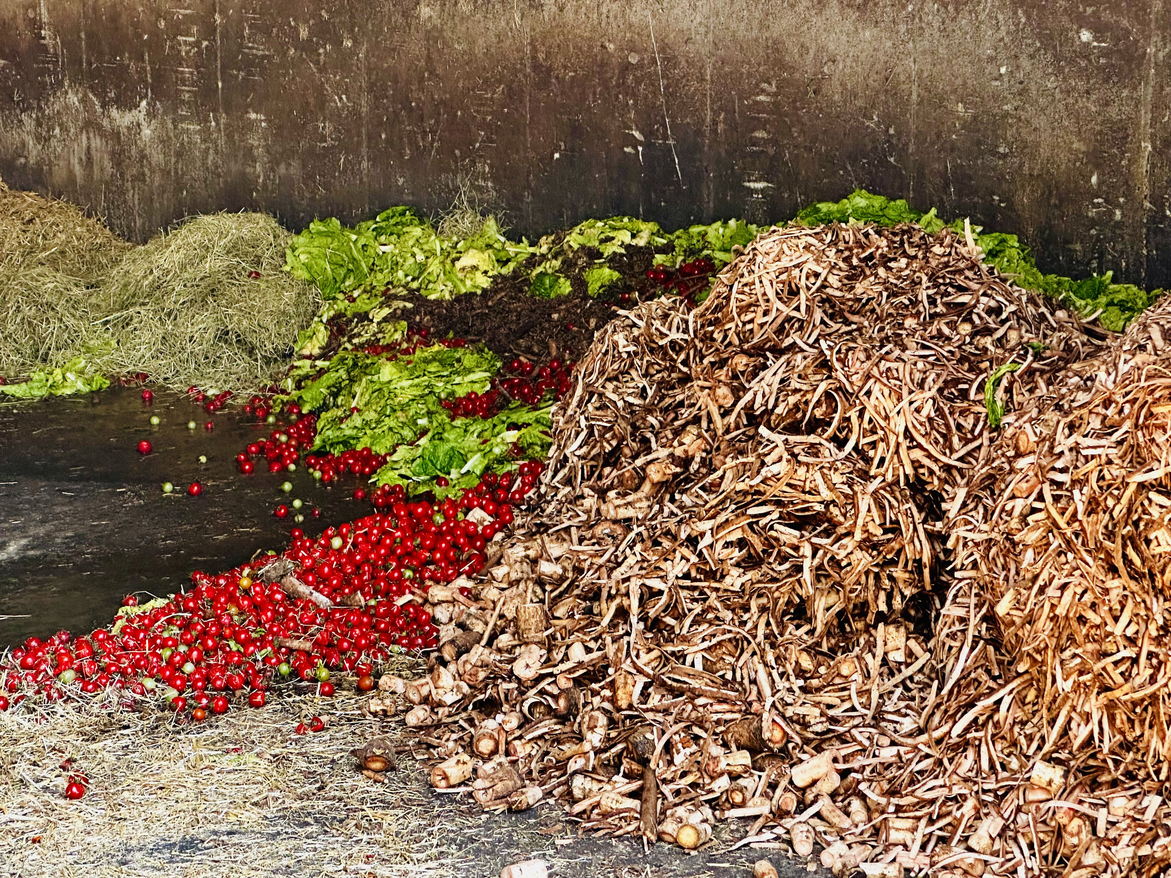 乾草飼料に混ぜている規格外品のトマトやごぼうの皮など