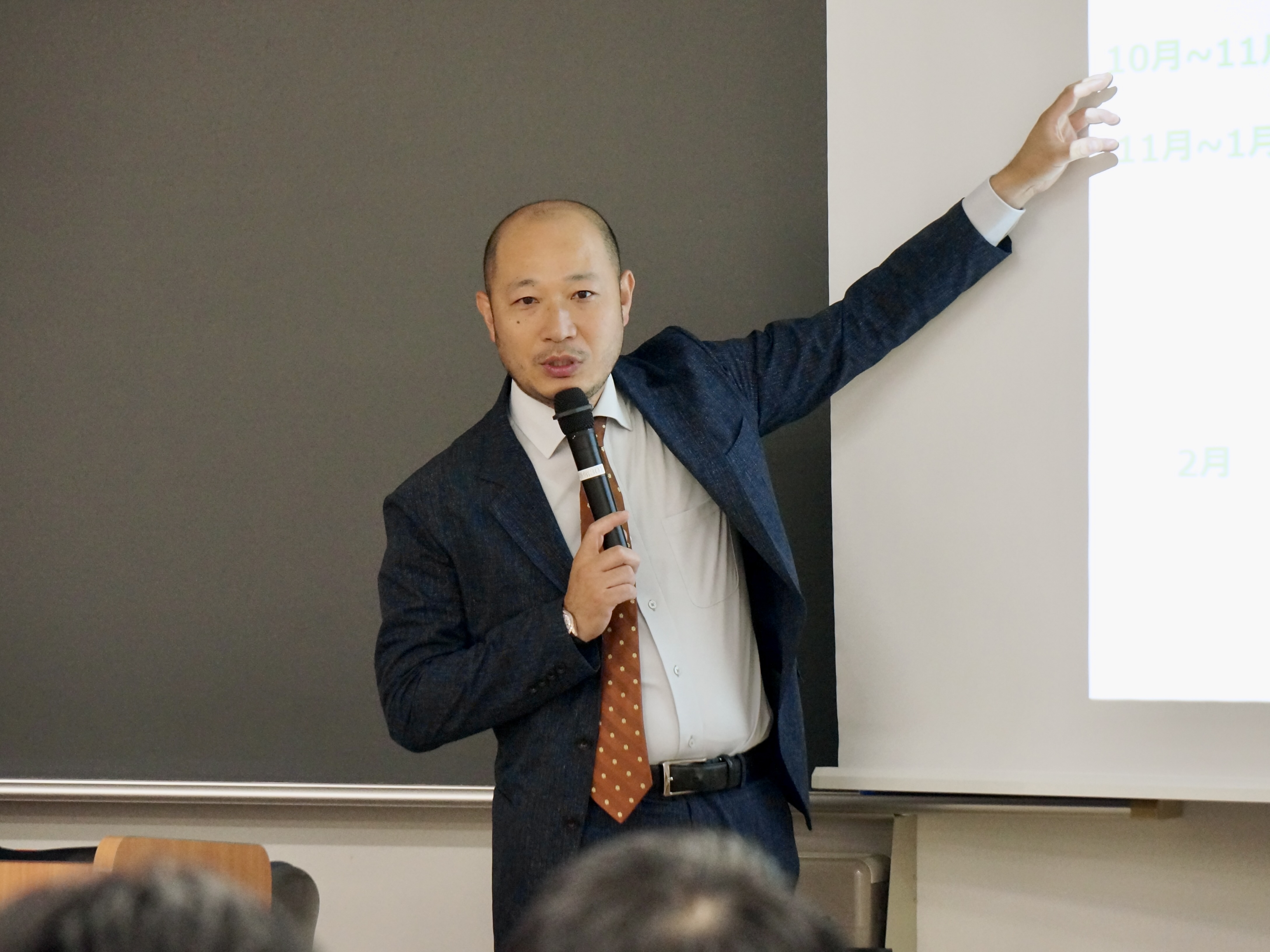 プロジェクトのスケジュールについて説明する広瀬企画の広瀬氏