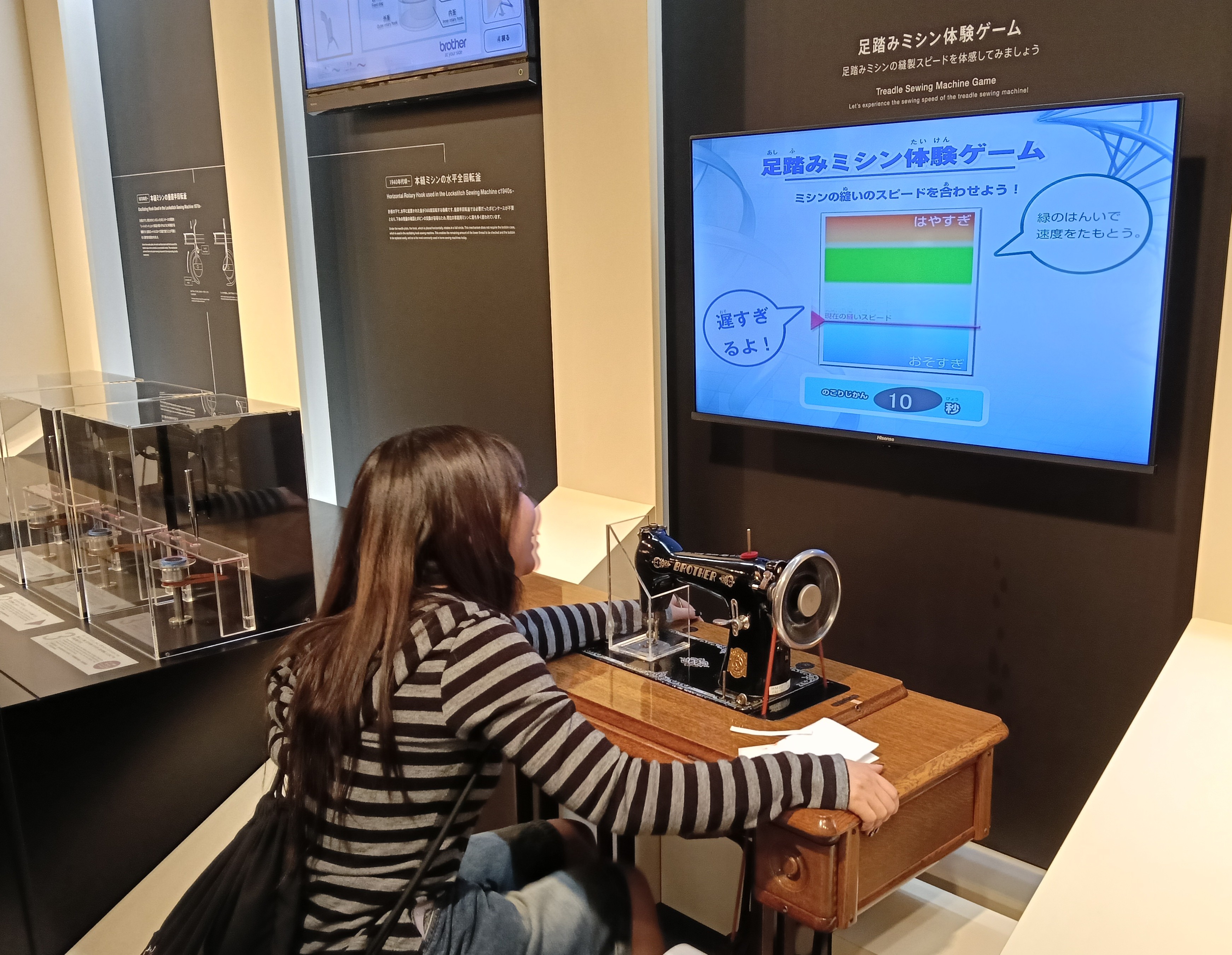 同館のミシンゾーンでは世界で最初に考案されたミシンをはじめ海外のミシンや同社の代表的機種など国内有数のコレクションを見学し、ヒストリーゾーンでは同社初のミシンや家電等のこれまでの代表的な製品等の展示物を見ながら同社の歴史について学習しました。プロダクトゾーンでは現在同社が展開している全事業の新製品のミシンで刺繍体験等をしました。