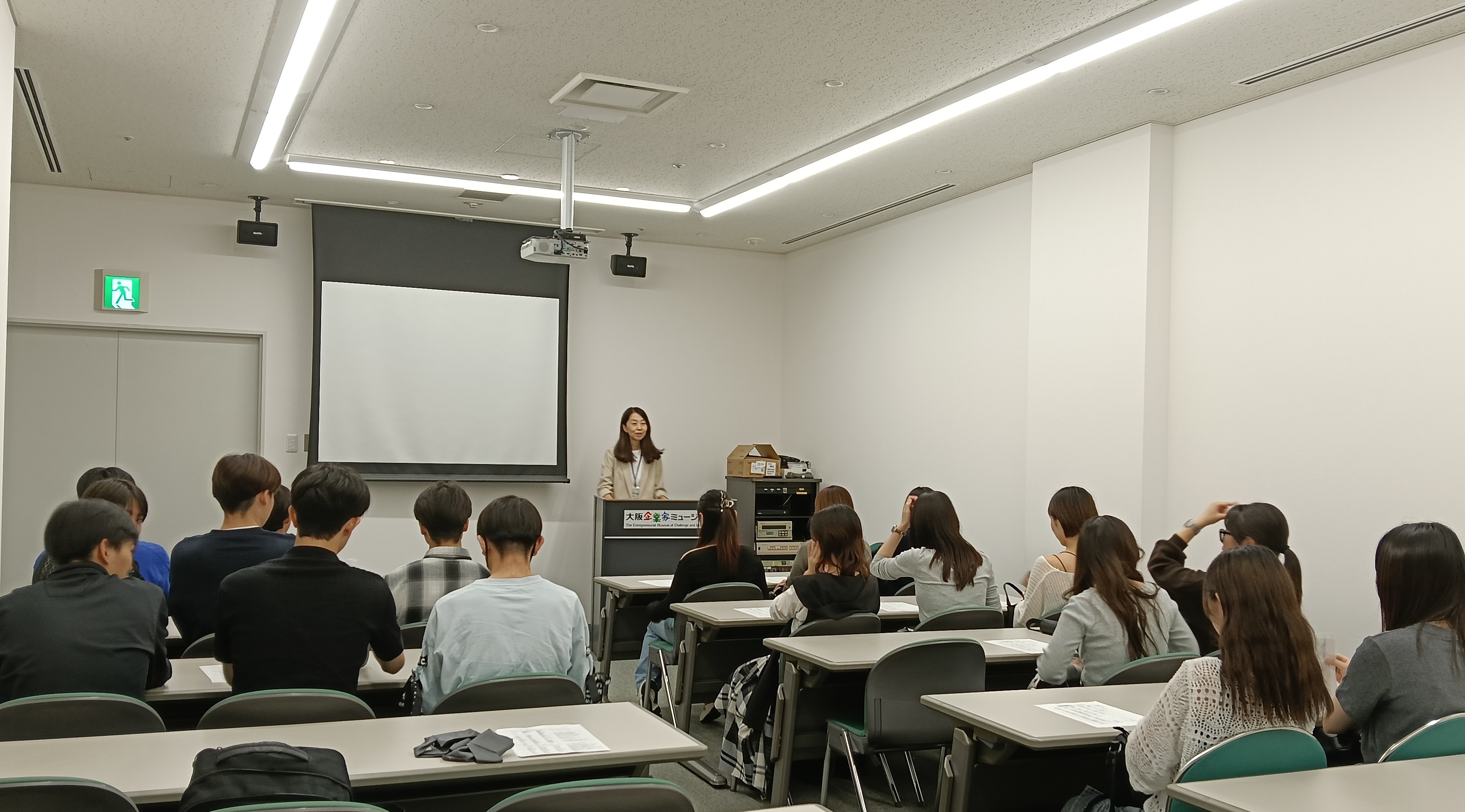 大阪企業家ミュージアムでは大阪に関連する企業家に関する展示品を、日本銀行では大阪支店内の展示品を、各々職員の方から解説を受けながら見学しました。大阪取引所では職員の方を前に、同社実施の大学生対象のイベント案を4グループが発表し、講評を頂くという課題解決型の企画を実施しました。