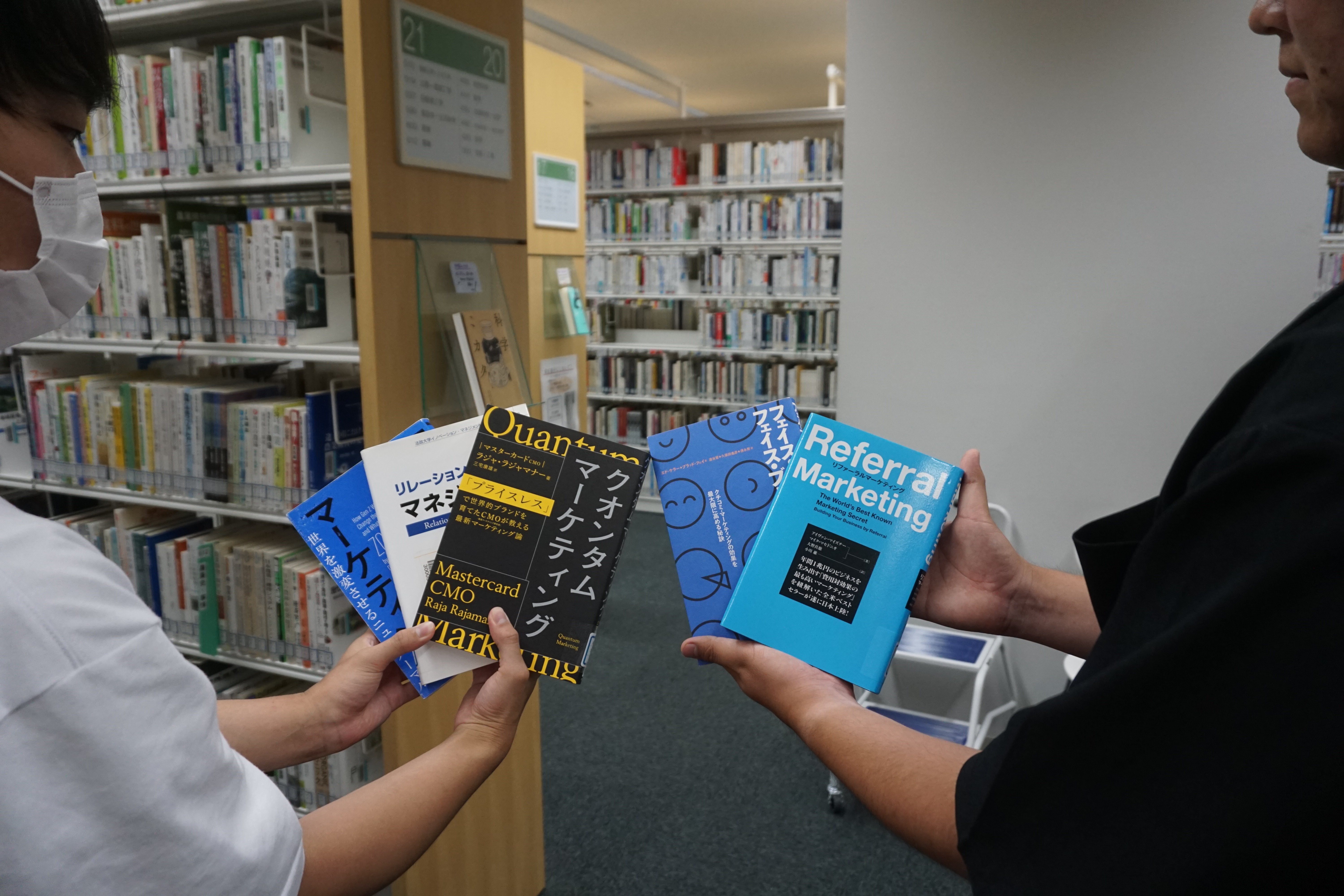 ゼミ終了後、学生は図書館に集まり、それぞれの研究テーマを深堀していくために、たくさんの書棚のなかから関連文献を見つけ出します。例えば、米国テック企業A社を研究する者は、こんな風に関連書籍を探します。創業者は思いついたアイデアをどのようにビジネスに活かしたのか?創業者は、どのように賛同者を集め、どのように資金を集め、どのように競合企業に打ち勝ったのか?そもそもその創業者が若いころに影響を受けたのはどんな本だったのか?
