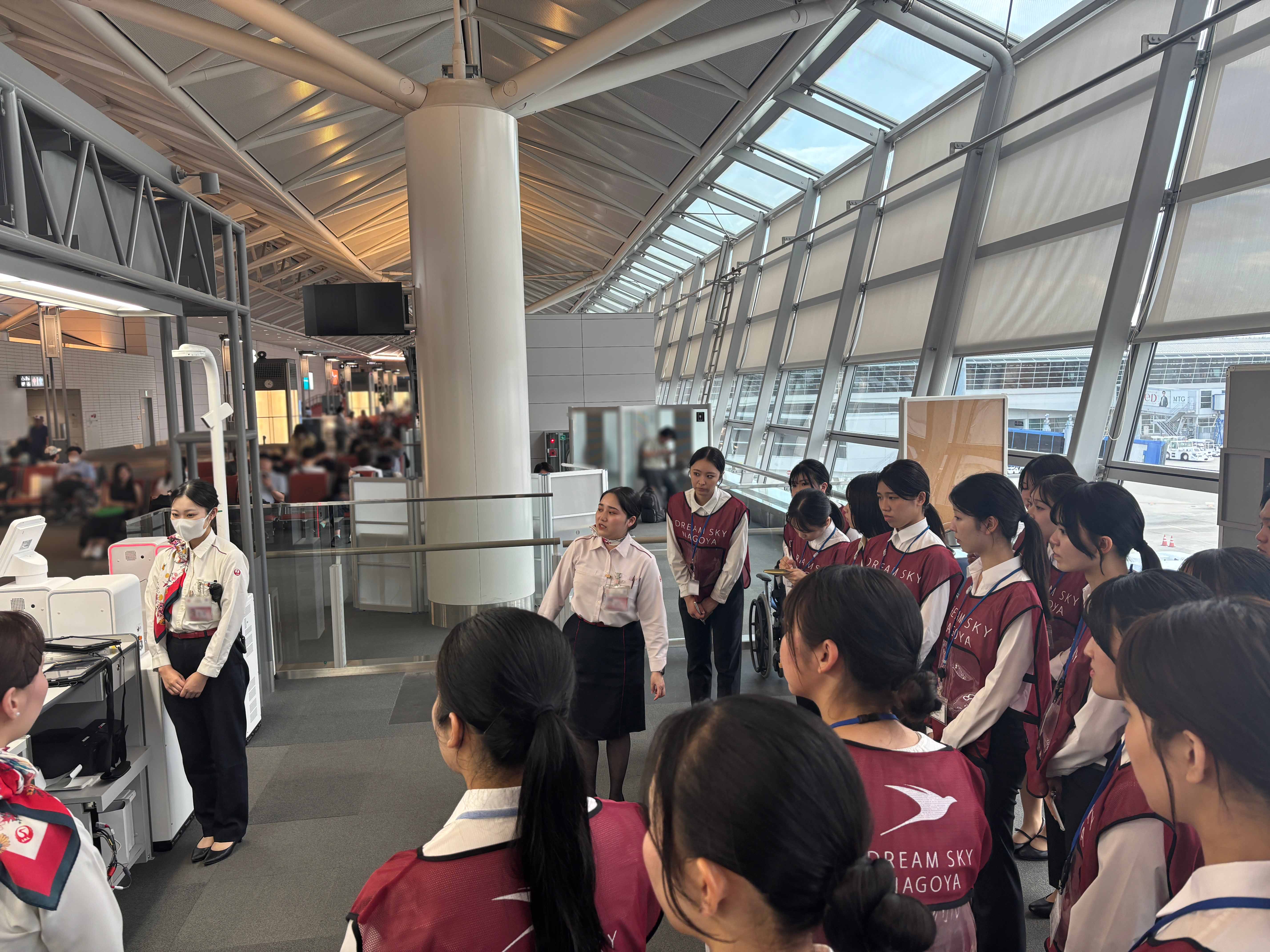 2025年9月18日(木)に株式会社ドリームスカイ名古屋のご協力を頂き、セントレアにてJAL中部国際空港研修会を実施し、1年生〜3年生まで20名の外国語学部生が参加しました。今回の空港研修会は、7月1日(木)の本学での事前研研修会を経て、実施しました。