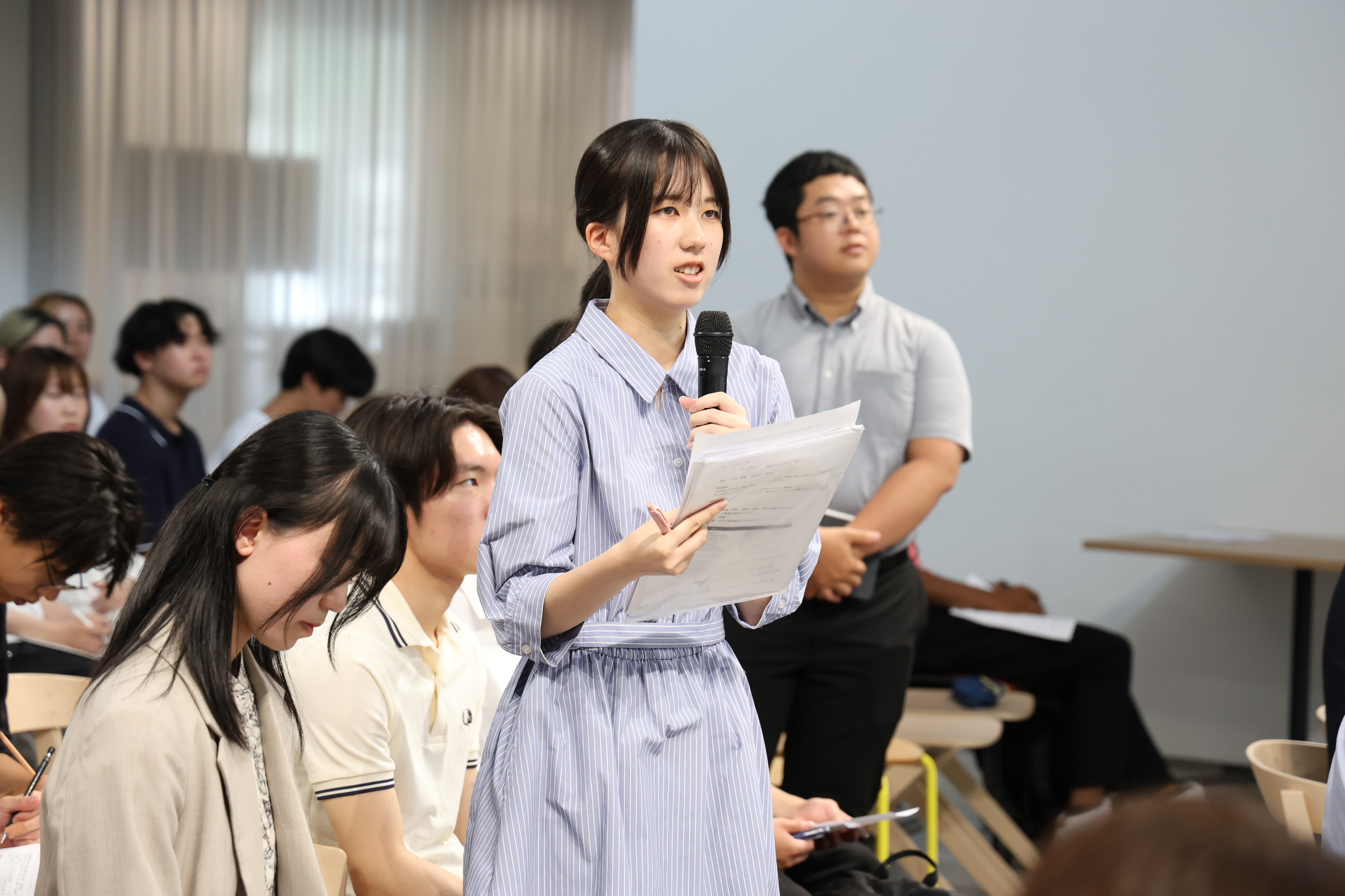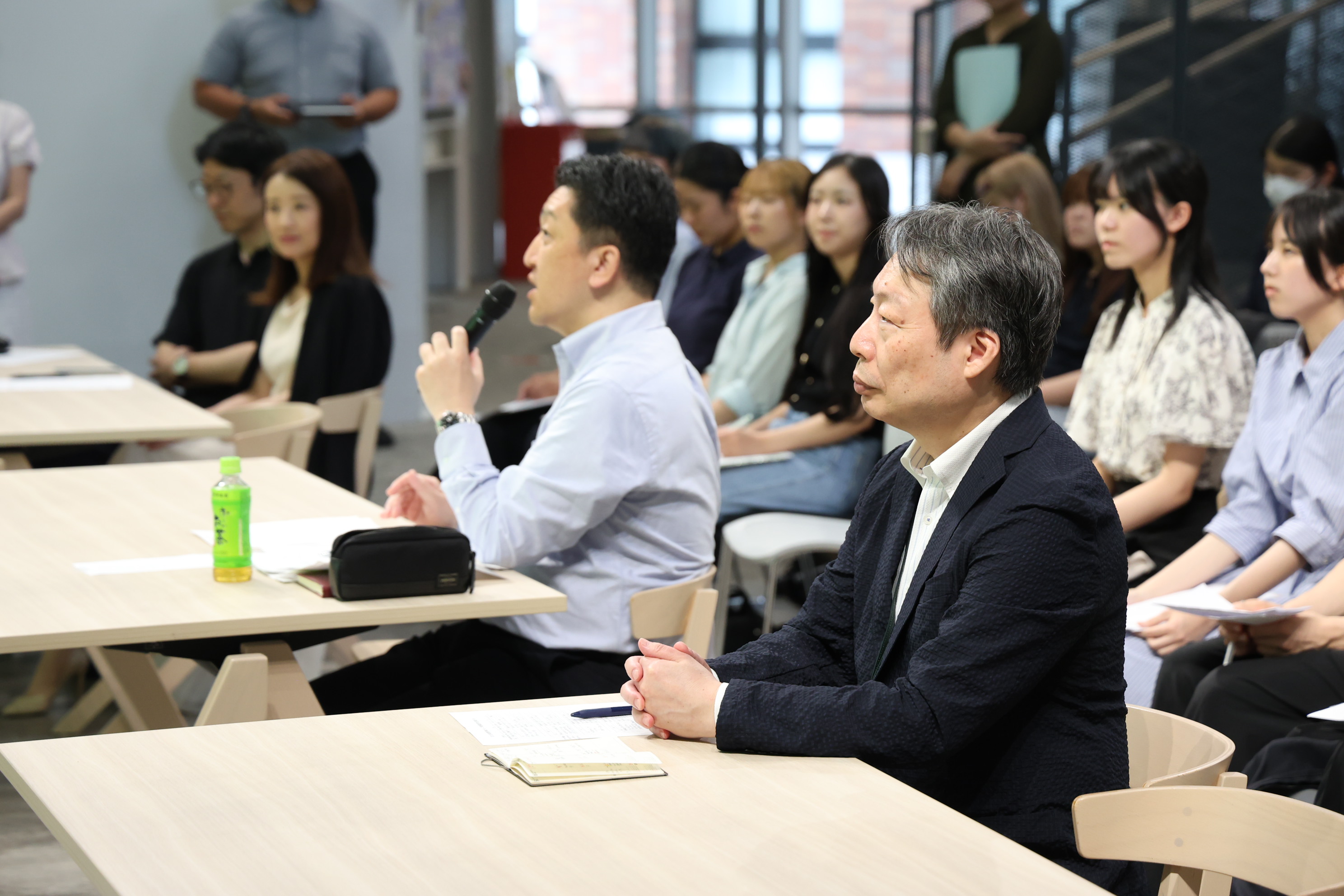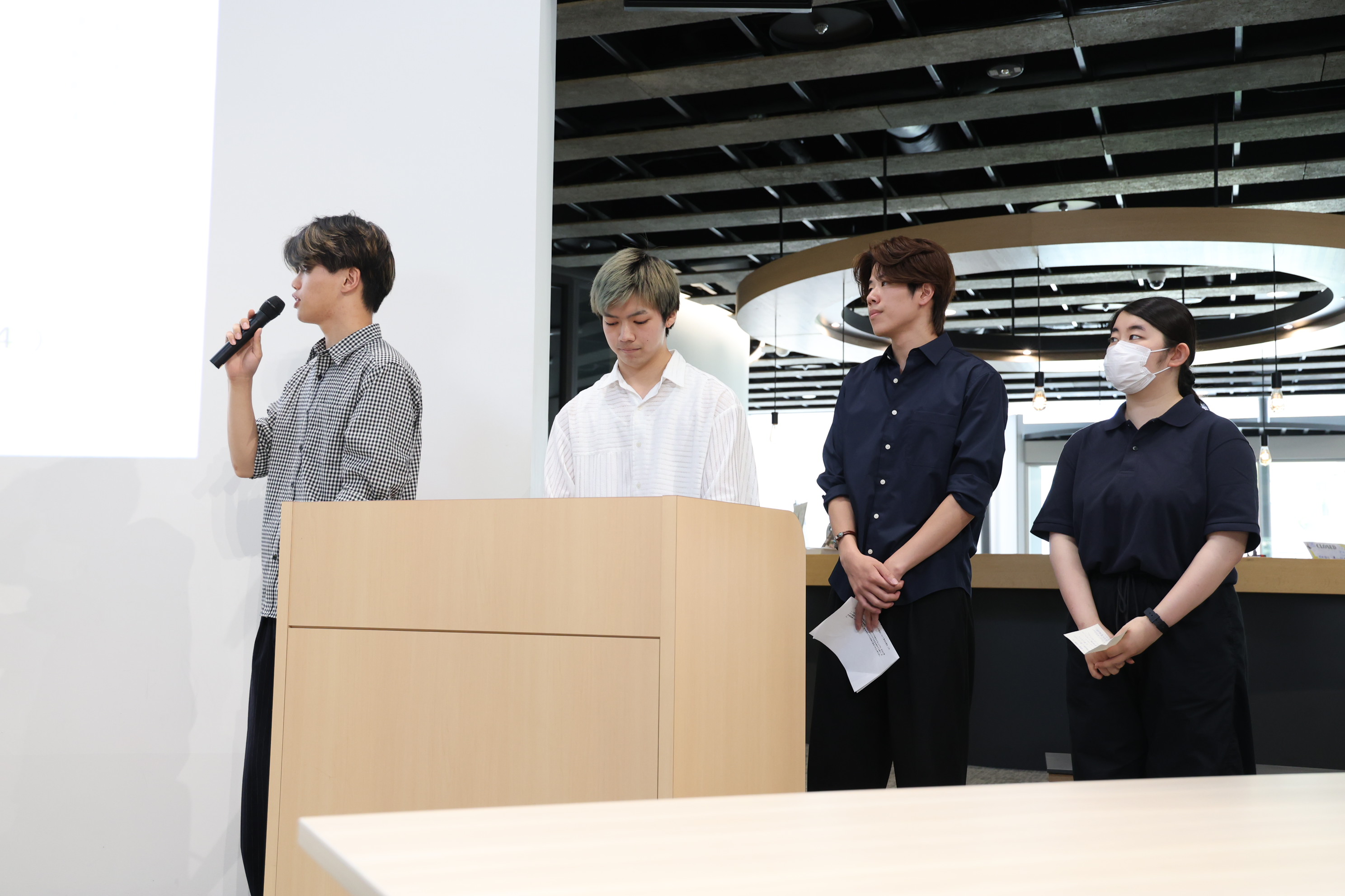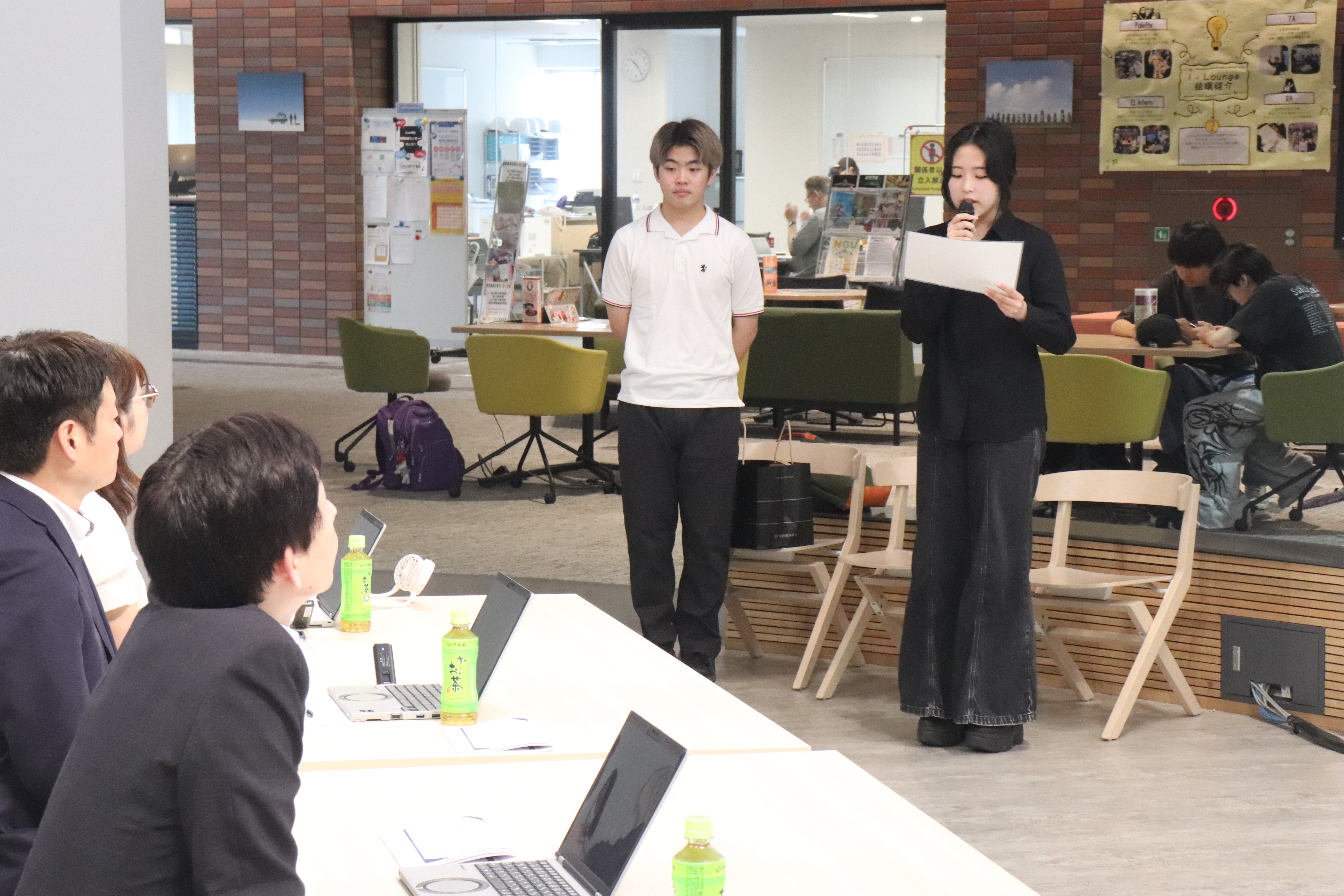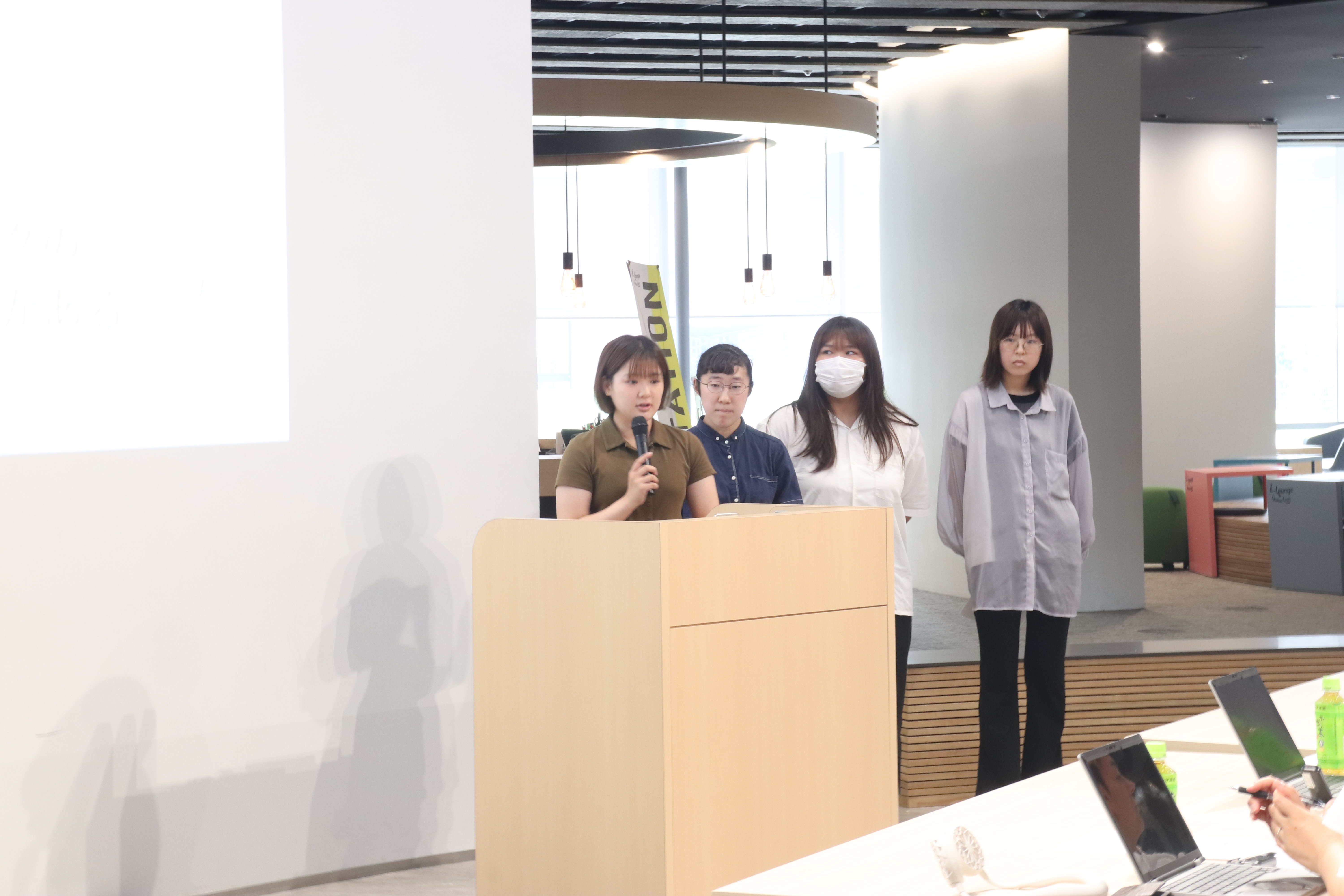 4月のキックオフからおよそ3ヶ月間、学生たちはクラスごとにチームを組み、調査、データ分析、複数回のクラス内発表を重ねて提案内容を磨き上げました。ゼミ内での中間プレゼンを経て代表6チーム(3クラスそれぞれ2グループ)が選抜され、7月15日の最終発表会へ進出。審査員として来学されたのは、執行役員・中根英昭氏、採用グループマネージャー・小暮広和氏、同グループの前口紗智子氏でした。