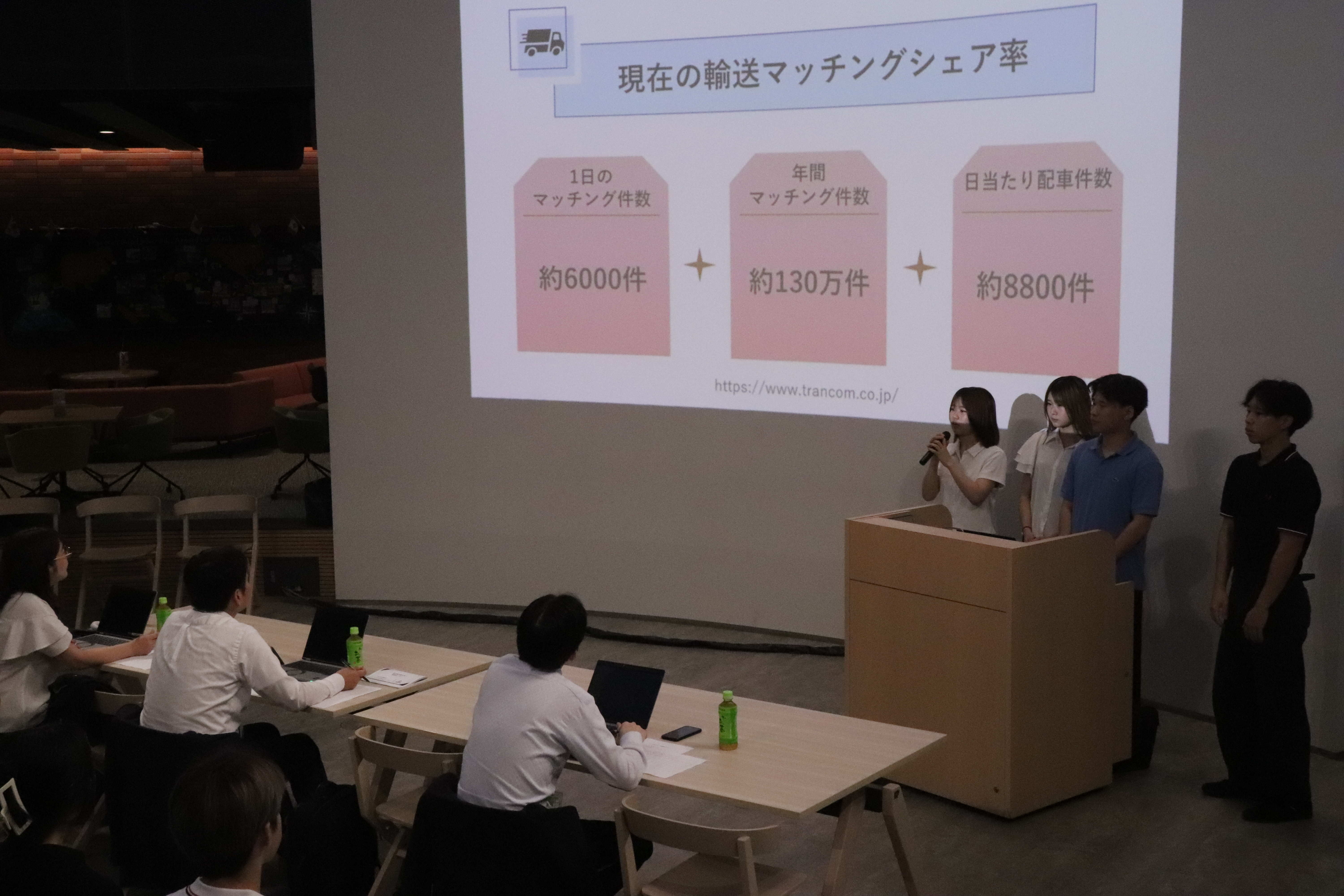 2年目となる今年度は連携企業を2社に拡大し、フジトランスコーポレーション様、トランコム様からそれぞれ2つのテーマが掲示されその課題に対して学生が解決策を提案しました。