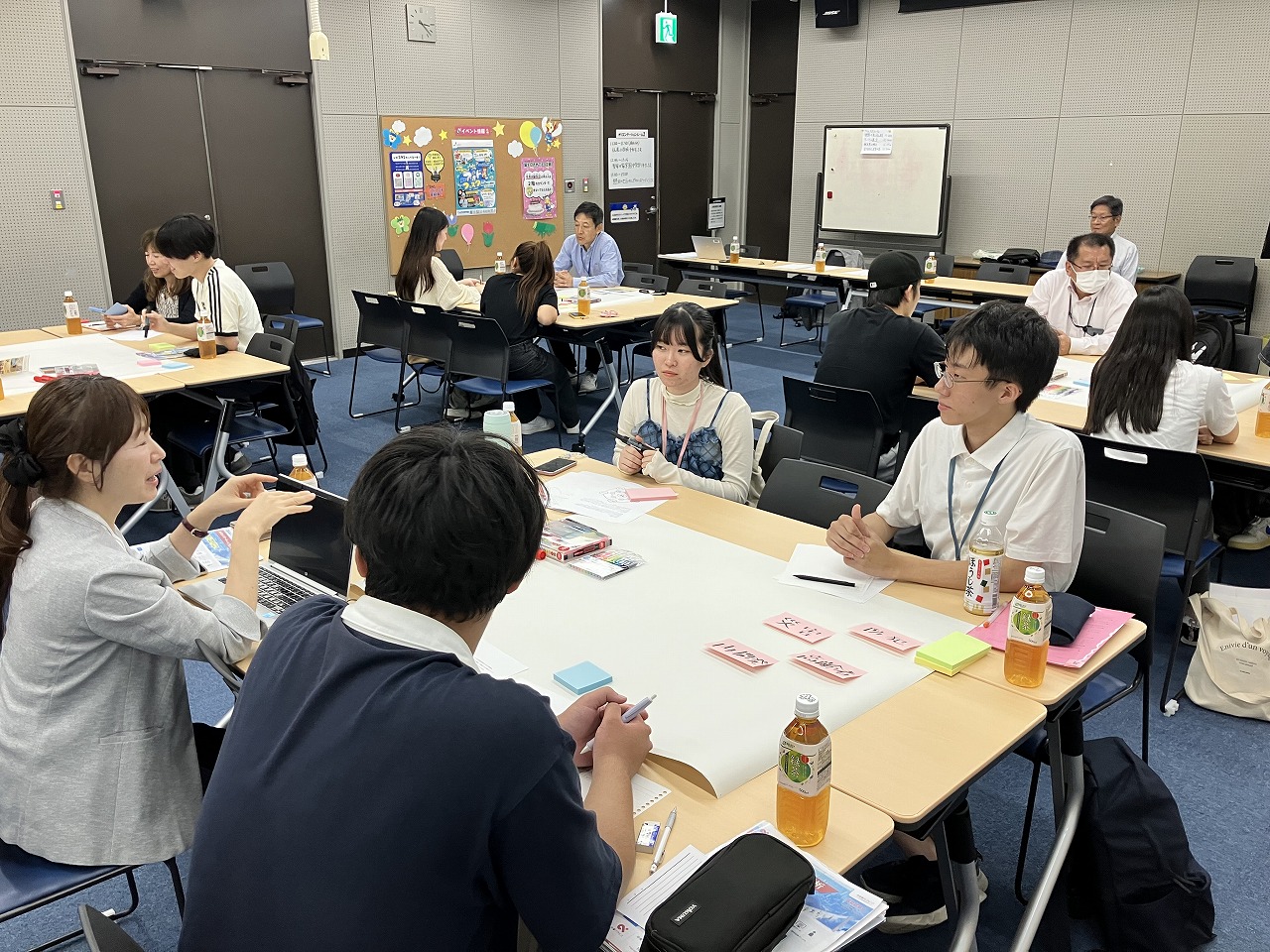 ワークショップは、熱田区をモデルに「わくわくワークショップin あつた」と題し、電柱広告、AI解析カメラ、地域共生活動をテーマに自由な発想で議論が行われました。