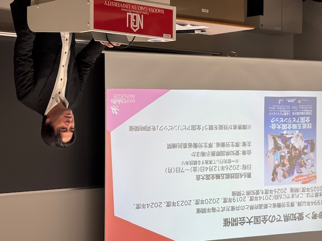 岡本純教授と水野清教授の3年次ゼミでは、愛知県技能五輪・アビリンピック推進事業の一環として、愛・地球博ボランティアセンター理事の鈴木人呂信様をお招きし、「2028年技能五輪国際大会を『自分ごと化』する」をテーマに、ワークショップを開催しました。