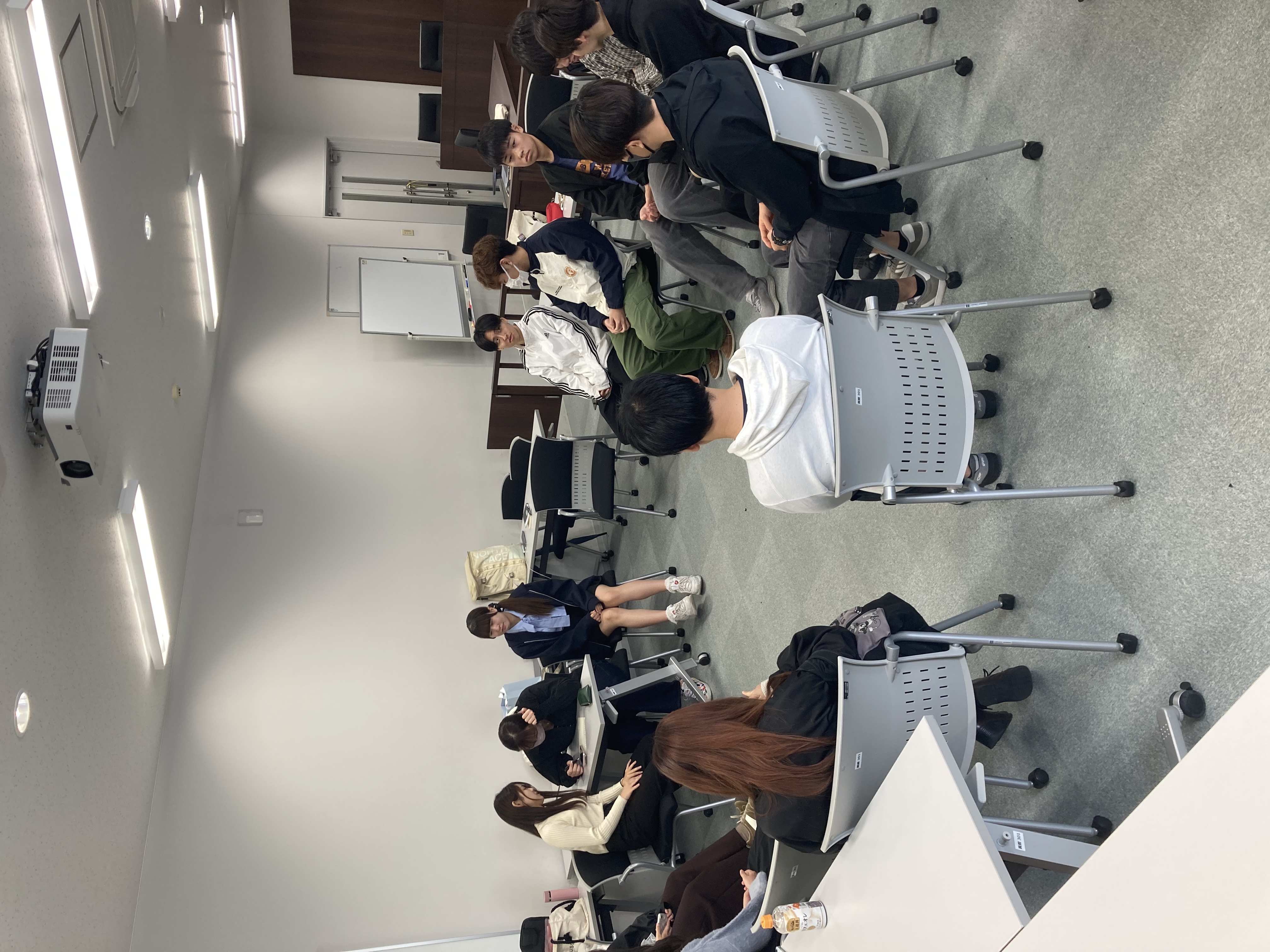 10月28日(火)の翼法律研究会の様子です。今回は翼館3階の法定教室で実施し、本日の参加者は12人でした。裁判所見学のため、村上先生の裁判についての講義を受け、そのあとはどのように発表していくかをグループで話し合いました。先生の裁判についての講義を聞いて、裁判の流れや仕組みを学べてとても新鮮でよかったです。