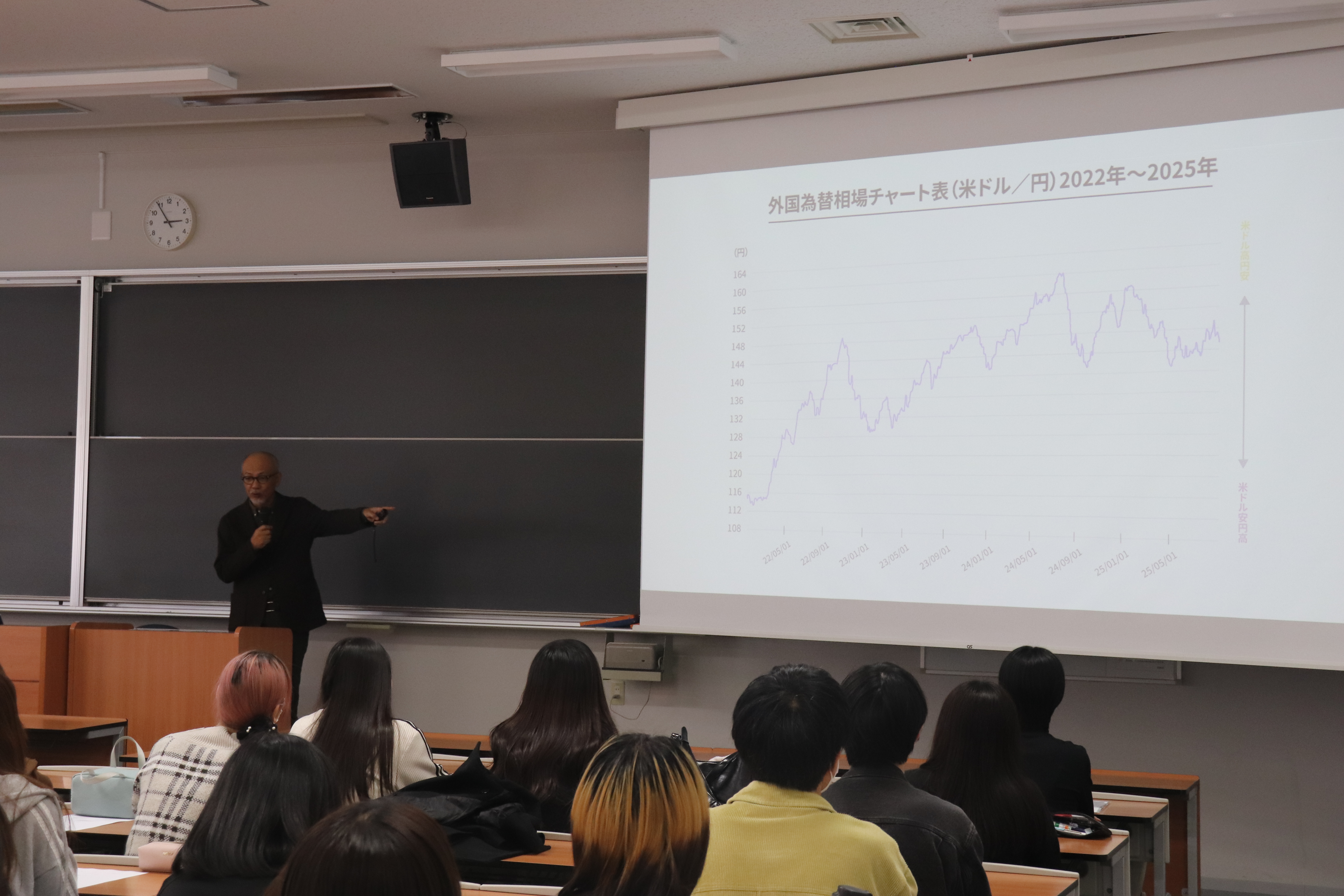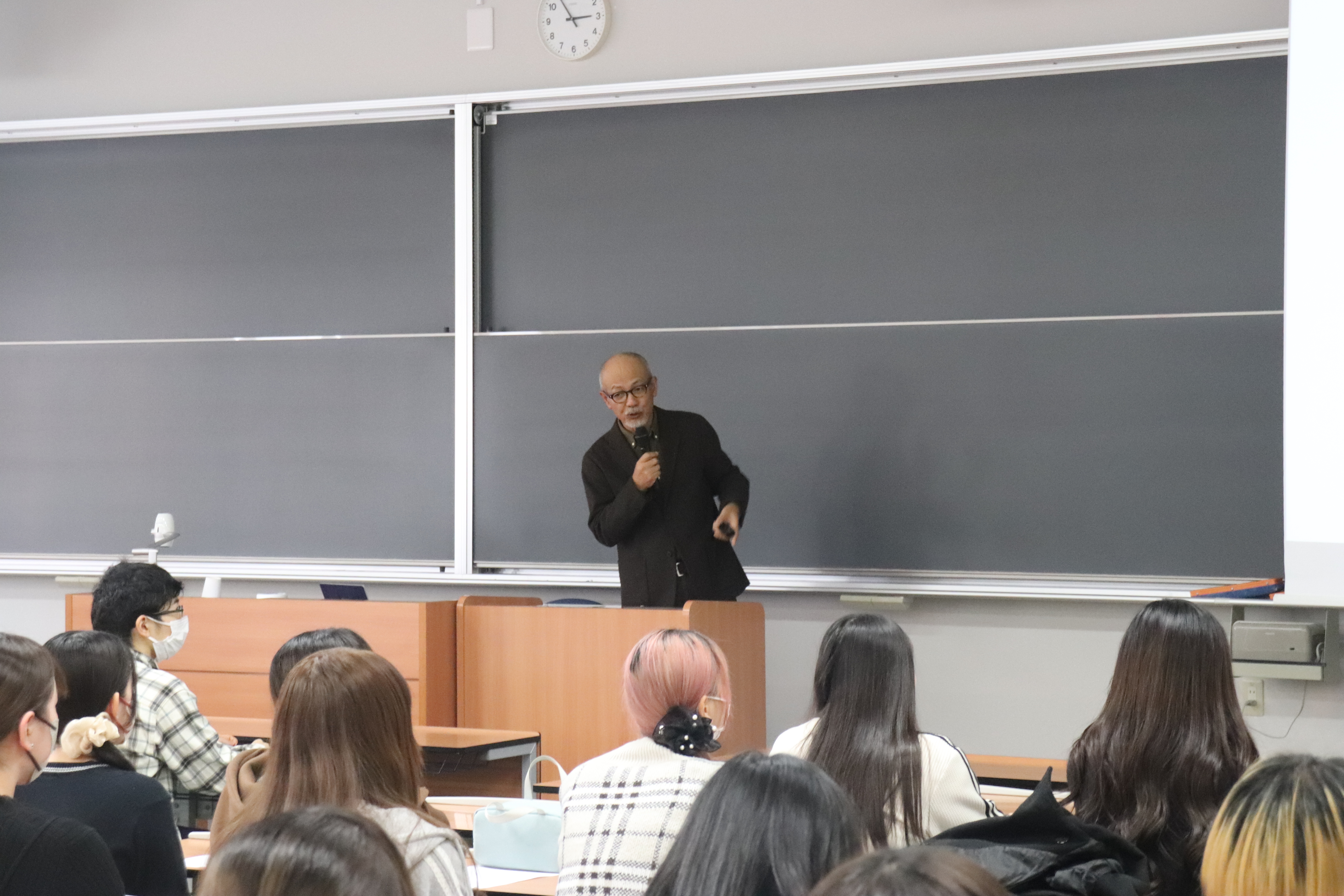 2025年11月17日(月)の「政治学入門(担当:鈴木隆教授)」において、中日新聞論説主幹の島田佳幸氏を講師にお招きし、学内公開講演会を開催しました。