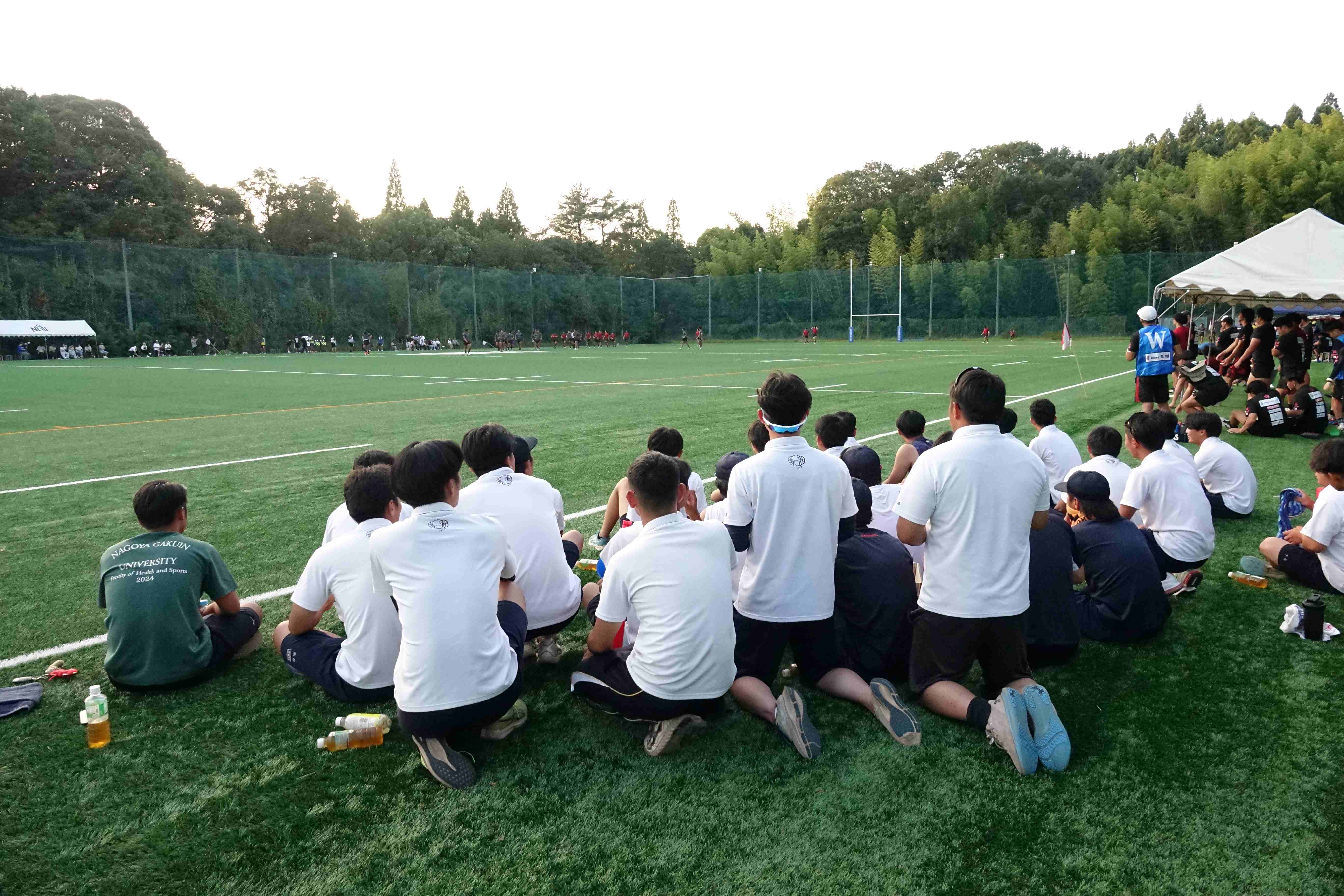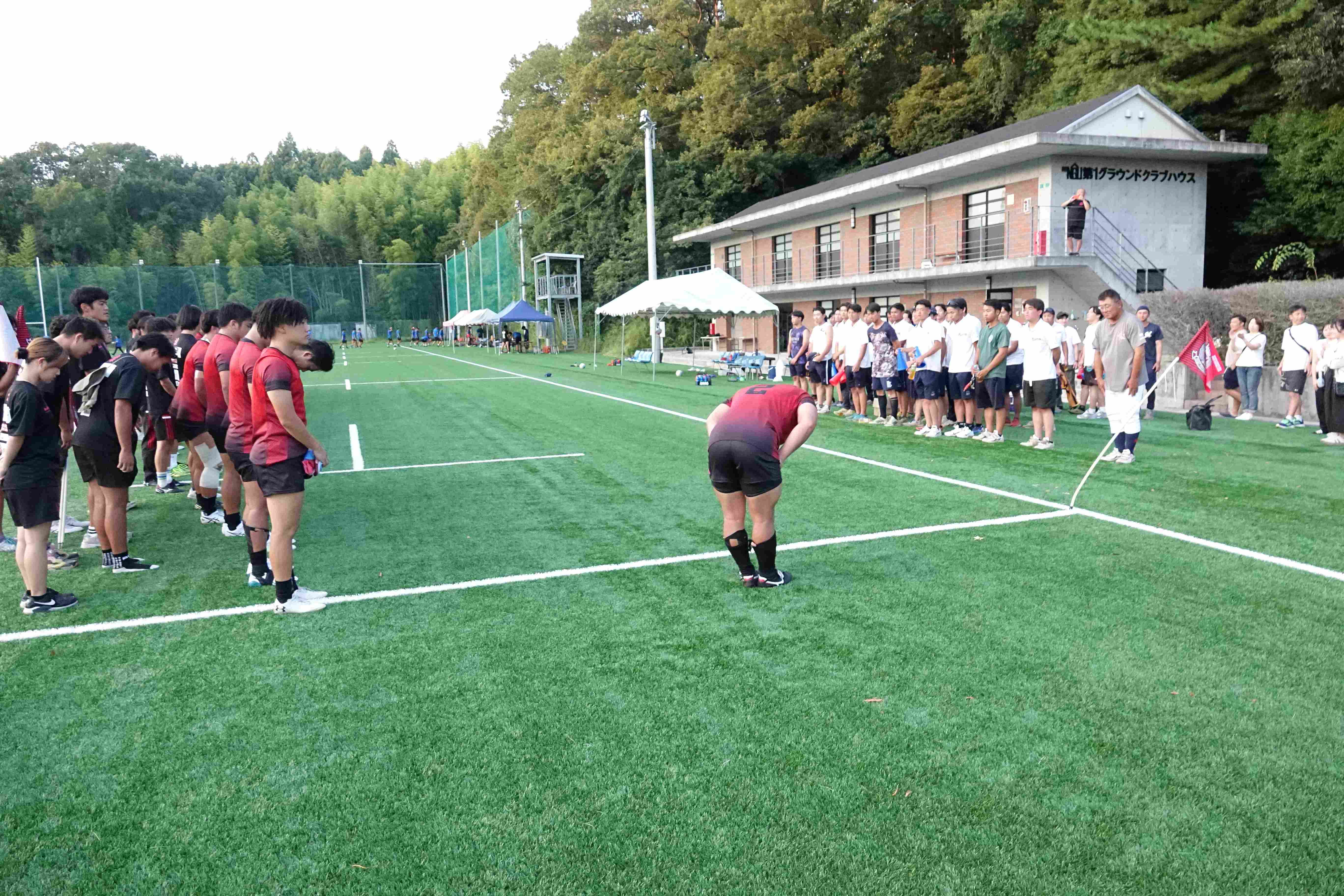 試合後には、サッカー部からラグビー部へ感謝の挨拶があり、ラグビー部の部員たちは拍手で健闘を称えました。