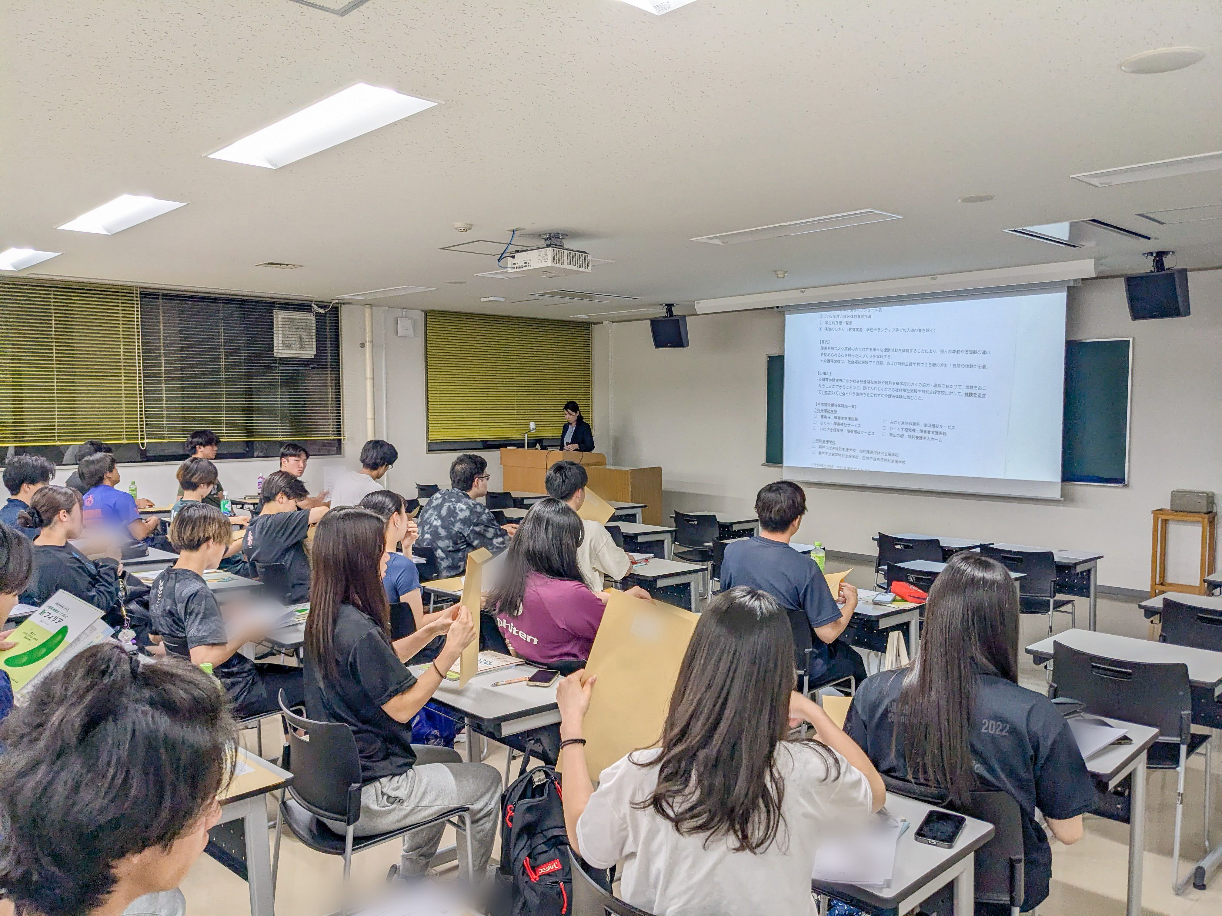 学び豊かな介護等体験になるように、各学生は熱心に事前指導を受けていました。学生たちの体験先での真摯な取り組みを期待しています。
