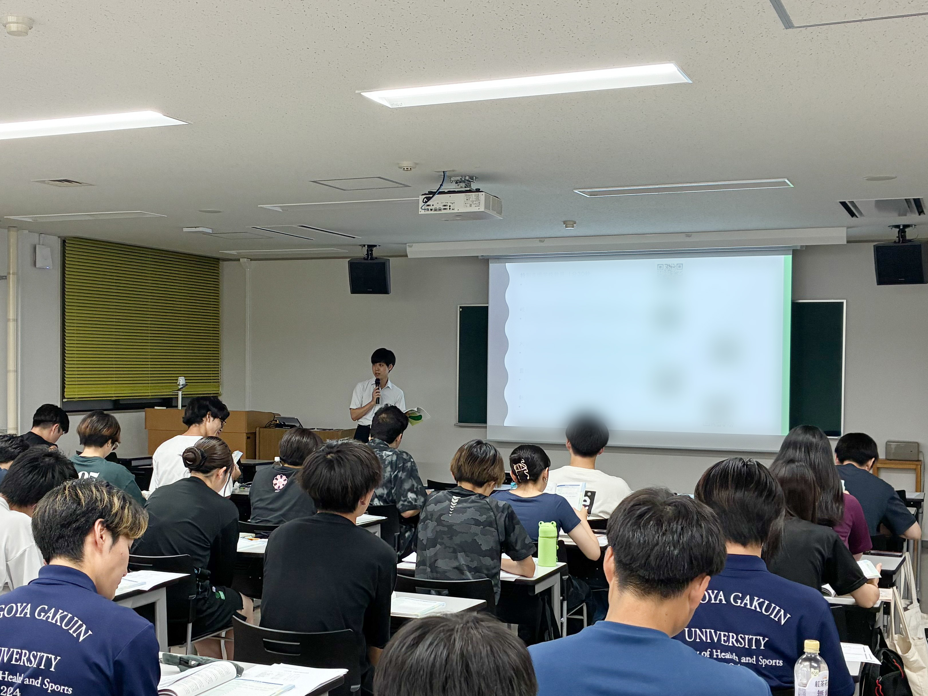 瀬戸キャンパス開催分で参加したのは、スポーツ健康学部生のうち、中高の保健体育の免許取得を希望するスポーツ健康学科生40名と、小学校の免許取得を希望するこどもスポーツ教育学科生4名です。本学の介護等体験は幼稚園免許の取得者を除き、原則3年生での派遣となっておりますので、大半が教職課程の大部分を修めてきた学生です。