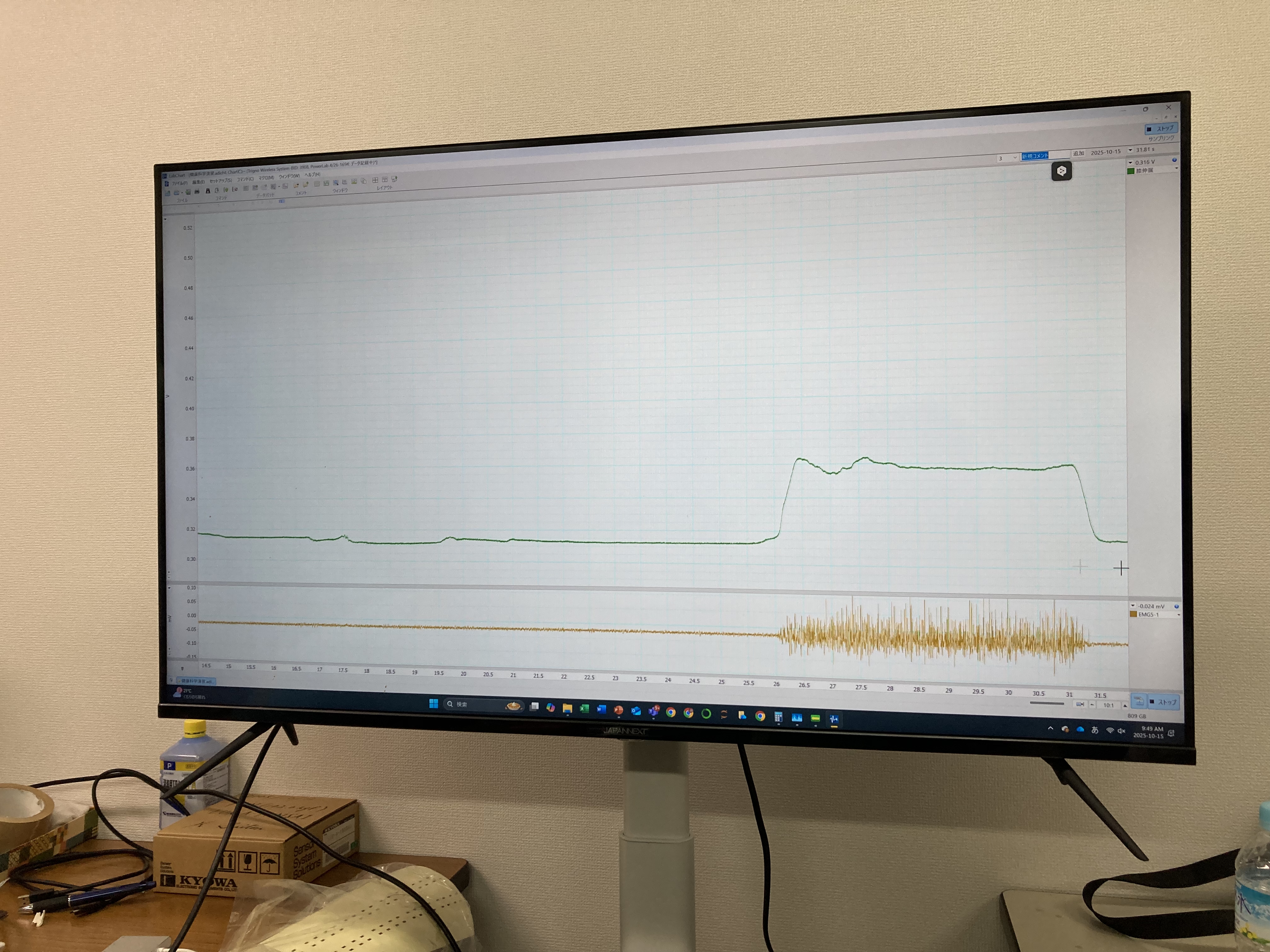 随意運動中の表面筋電図測定、計測データの分析