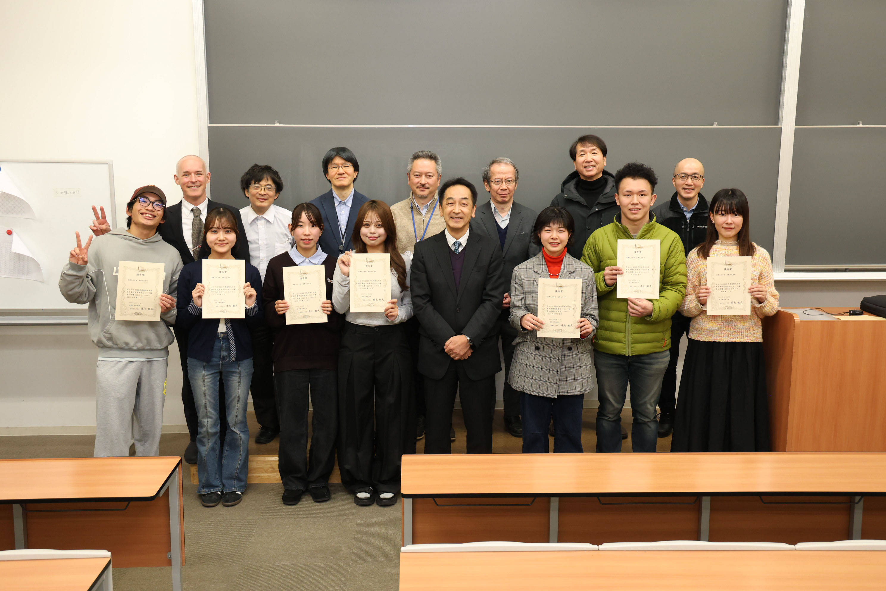 今年度は7名の発表者が各々の研究成果を披露しました。発表会終了後、鹿毛敏夫学部長が「今年は全体的にレベルが高かった」と評され、毎回、質疑応答の時間が足りなくなるほど活発に議論が交わされていました。閉会の挨拶では「人はAIとは違って自分の知識が不完全であることを自覚しており、だからこそ知的好奇心を満たす喜びを感じることができる」という鈴木啓司准教授の言葉で締めくくられました。