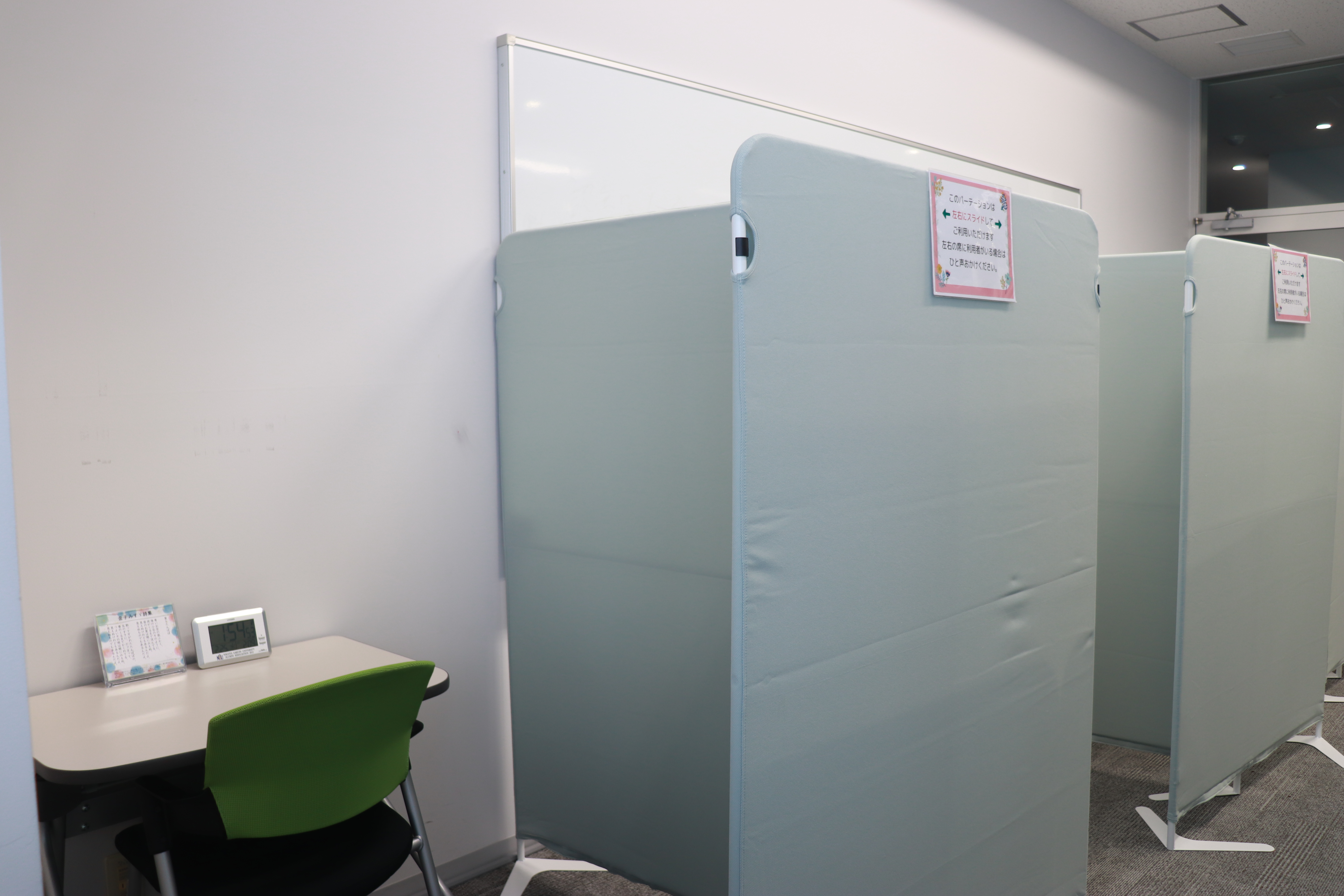 人の視線や会話が気になるときなど、ひとりの時間を持ちたい学生のために、ひと息つける場所としてパーテーションで区切られた個室スペースを用意しています。短時間の利用も可能ですので、ぜひご利用ください。