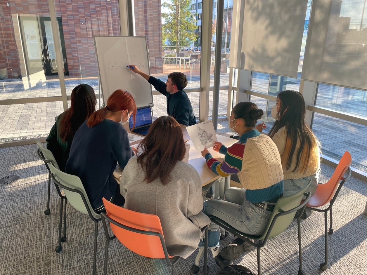 多くの留学生がi-Loungeを利用していますので、好きな時に留学生と交流することができます。留学生も日本にとても興味があるため、積極的に声をかけてみてください。