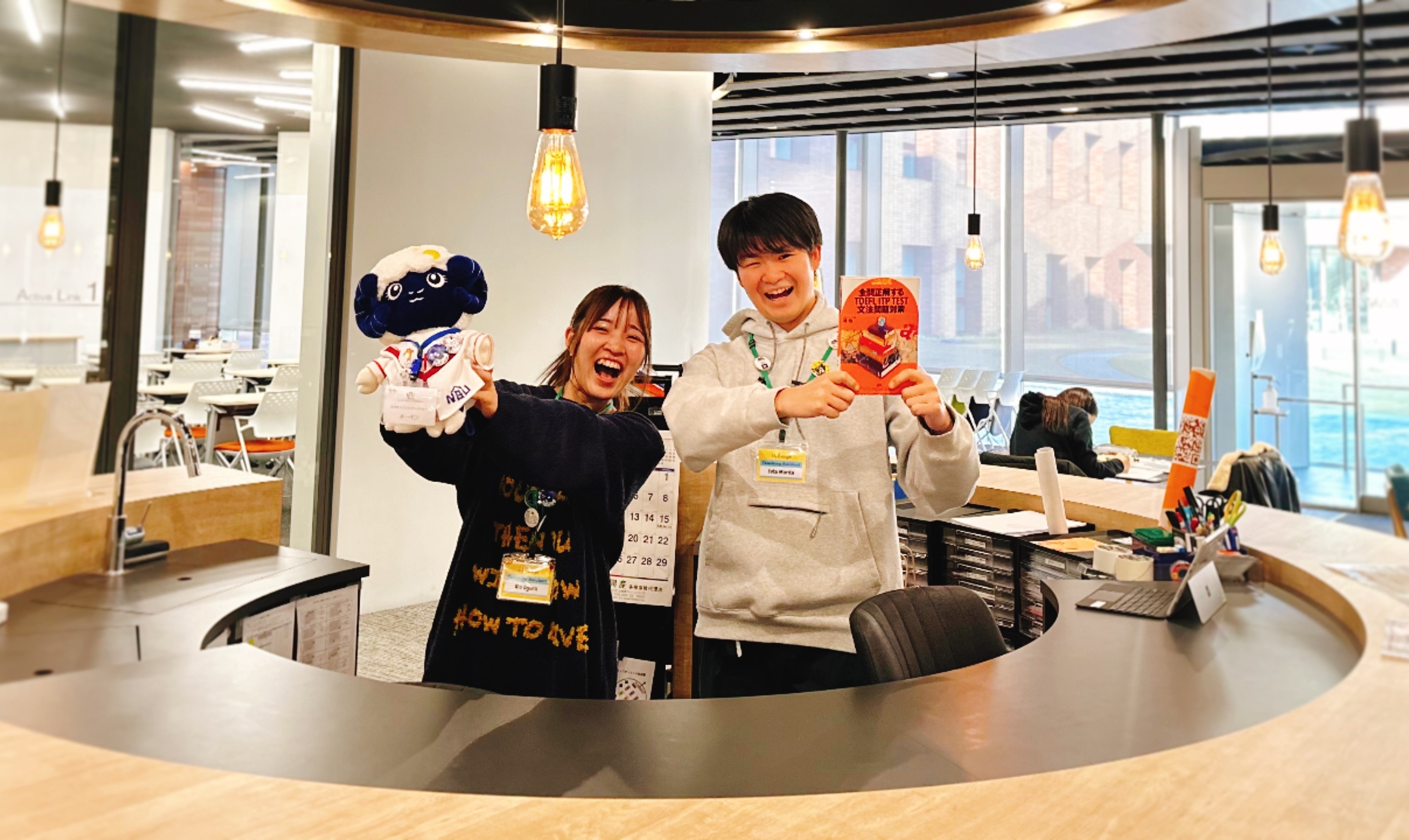 名古屋キャンパスたいほうGlobal Linksには「社会連携」と「国際教育」の二つの機能があります。このうち、「国際教育」の機能を担うのがインターナショナル・ラウンジ(通称:i-Lounge)です。i-Loungeでは、専属スタッフのほか、外国人講師(LA:ラーニング・アドバイザー)やi-Lounge学生スタッフ(留学経験のある学生TA(ティーチング・アシスタント)、Palette(パレット)、英語ラウンジ・インターン生、英語ラウンジ・Jr.インターン、留学生アシスタント、図書スタッフ)がみなさんの語学学習をサポートし、世界の文化や社会等、語学だけでなく異文化に触れる各種イベントを企画・実施しています。