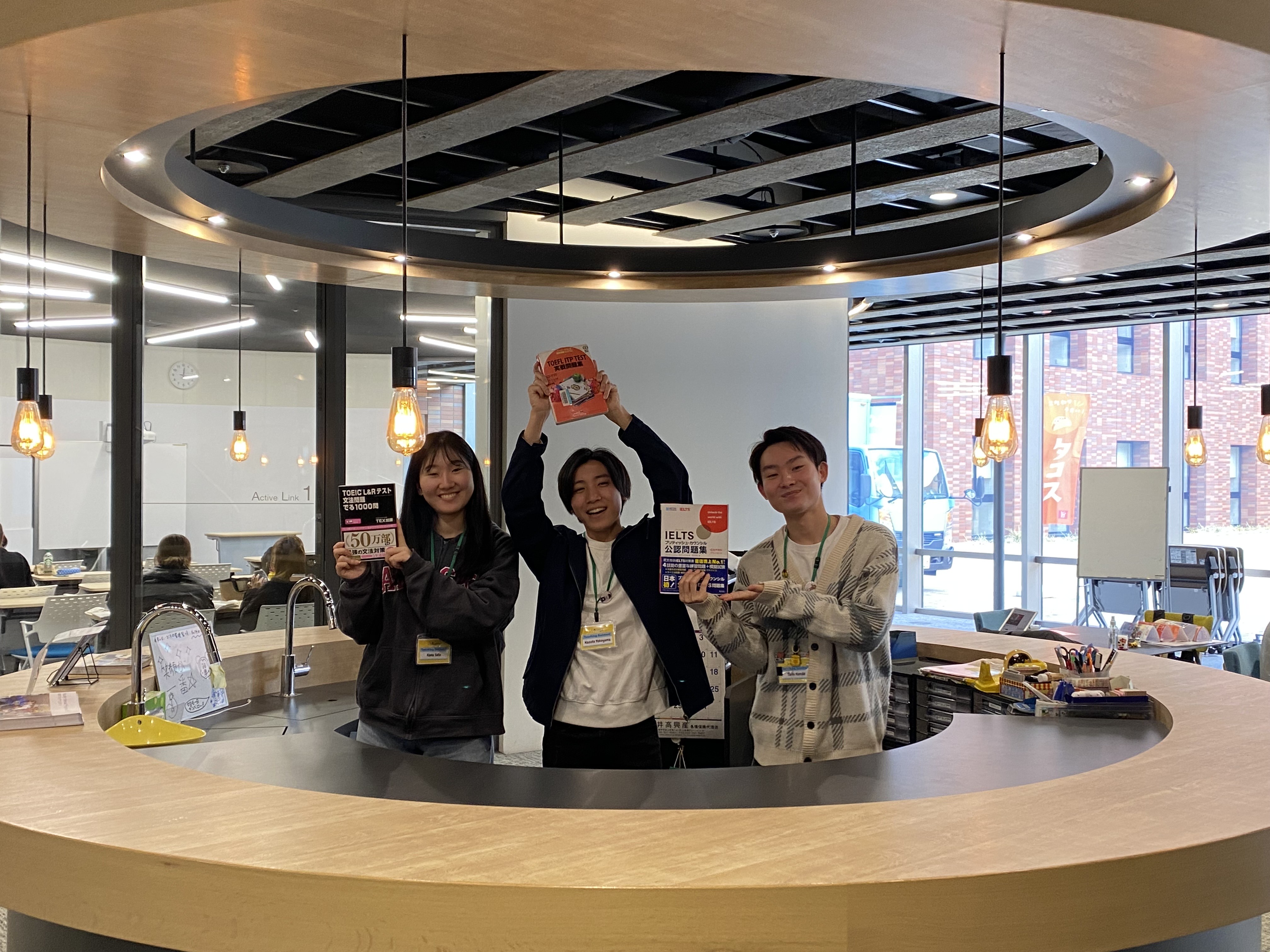 英語で分からないことがあればi-Loungeのスタッフに質問してください。色々な英語学習方法の紹介、自学自習のための教材プリント(無料)の配布、TOEFLやTOEICなどの教材紹介を行っています。