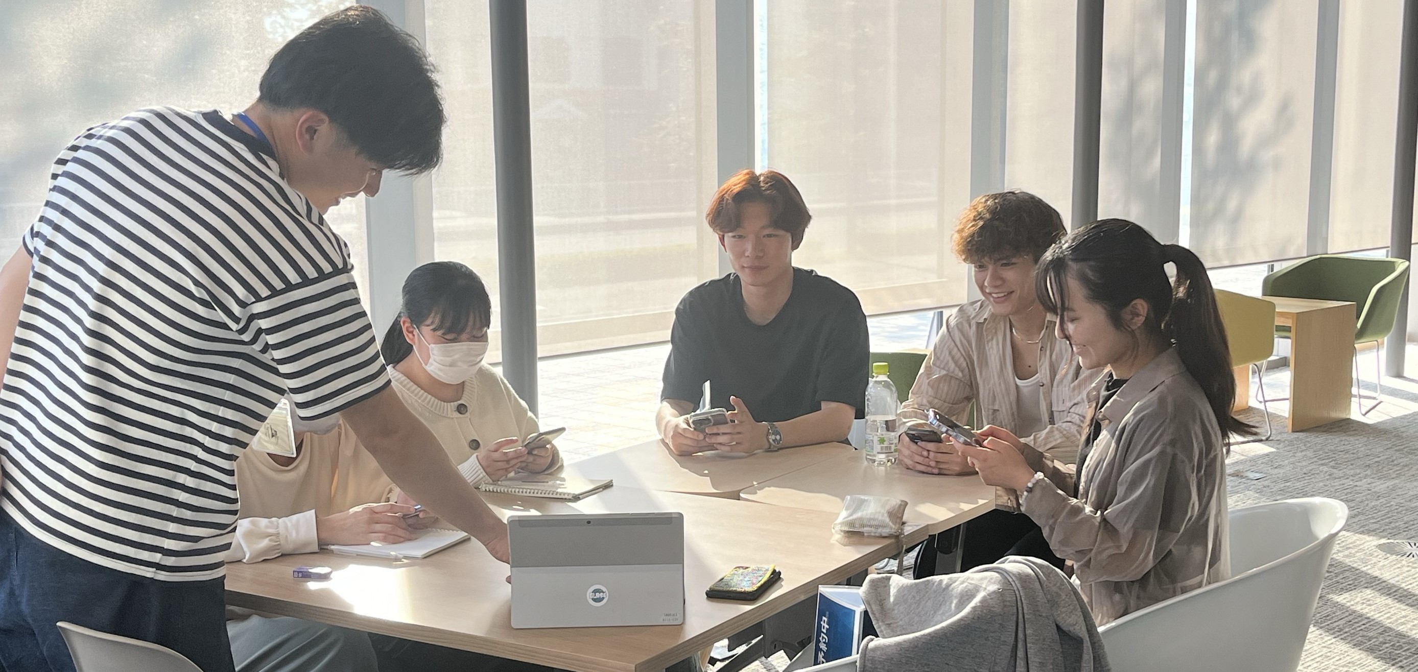 海外からの留学生はもちろん、他学部学科・他学年の学生とも出会ってつながる。