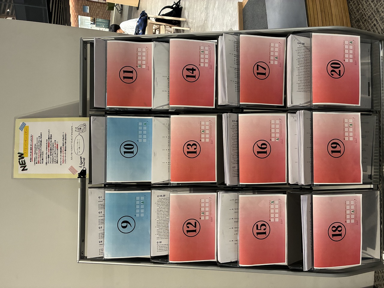自由にプリントを取り、自分で答え合わせを行いながら学習を進めることができます。各プリントの学習を終えたらTAに提示すると、スタンプカードにスタンプを押してもらえます。