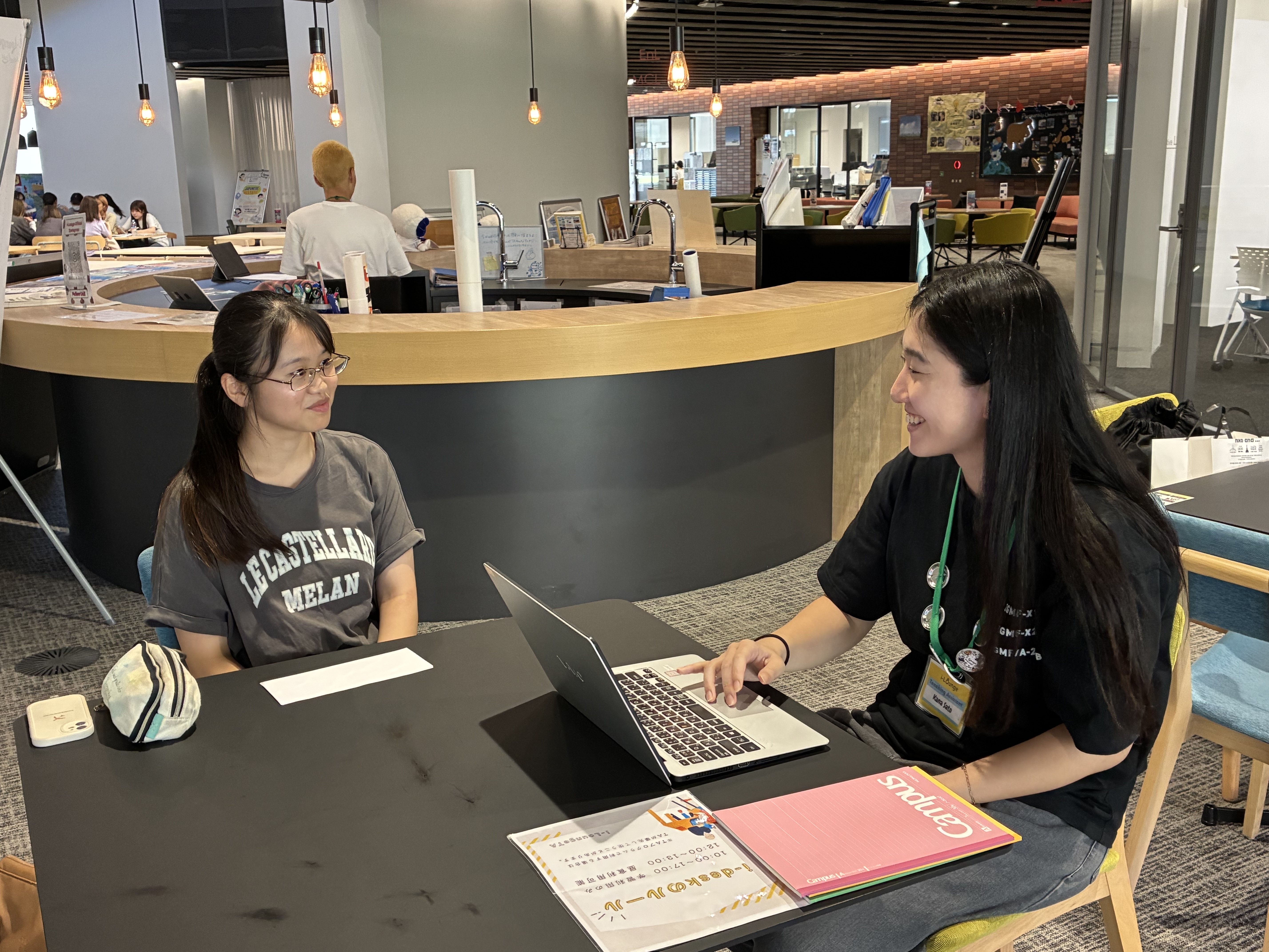 名古屋学院大学たいほうに位置するi-Loungeは、年間100以上の語学学習プログラムや国際交流イベントを実施している国際教育拠点です。海外に行かなくても、学生は異文化理解を深め、国際的な視野を広げることができます。
