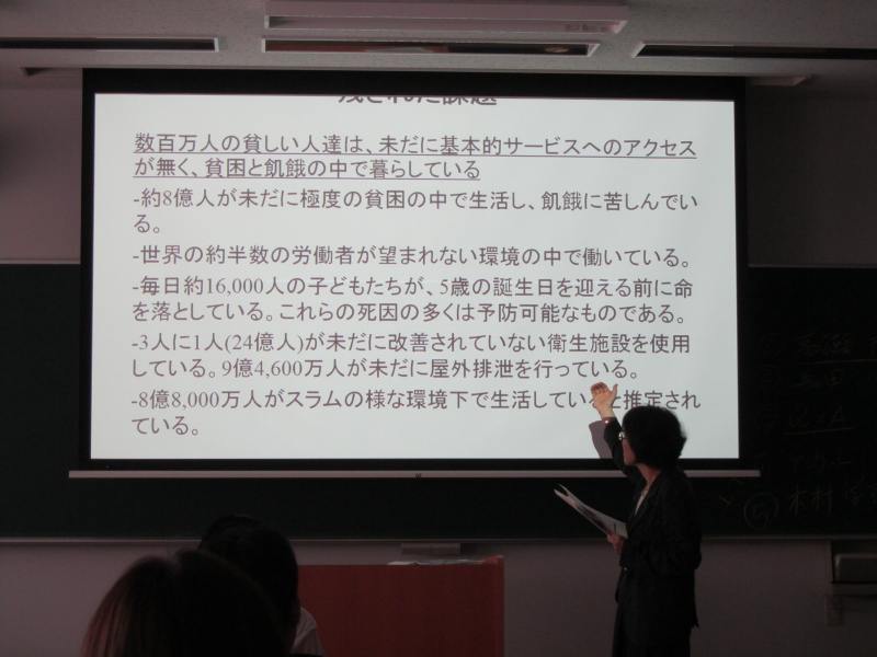 国際文化学部では、6月27日「国際機構論(長田こずえ)」の授業において、名古屋唯一の国連機関である国連地域開発センター所長、高瀬千賀子氏をお招きし、お話を伺いました。