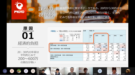 プロトコーポレーション様のご協力を得るのは今回で6年目となります。毎年、プロトコーポレーション様から貴重な個票データを提供頂き、受講生はグループごとにそれを実践的に分析して得たエビデンスをベースに、利益を獲得するための提案作成に取り組んできました。2021年度秋学期は70名の受講生が履修し、13グループが最終プレゼンに臨みました。多くのグループがリモートで深夜まで議論し、最終プレゼンの準備をするなど、本気で課題に取り組んでいる姿が見られました。
