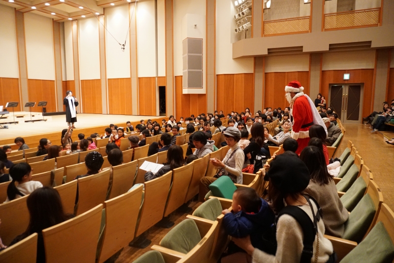 コンサートの締めくくりにはお待ちかねの“サンタさん”が登場。 サンタさんからプレゼントが配られると、お子さんたちは嬉しそうに受け取っていました。来場者の方に、一足早いクリスマスの雰囲気を味わっていただくことができました。