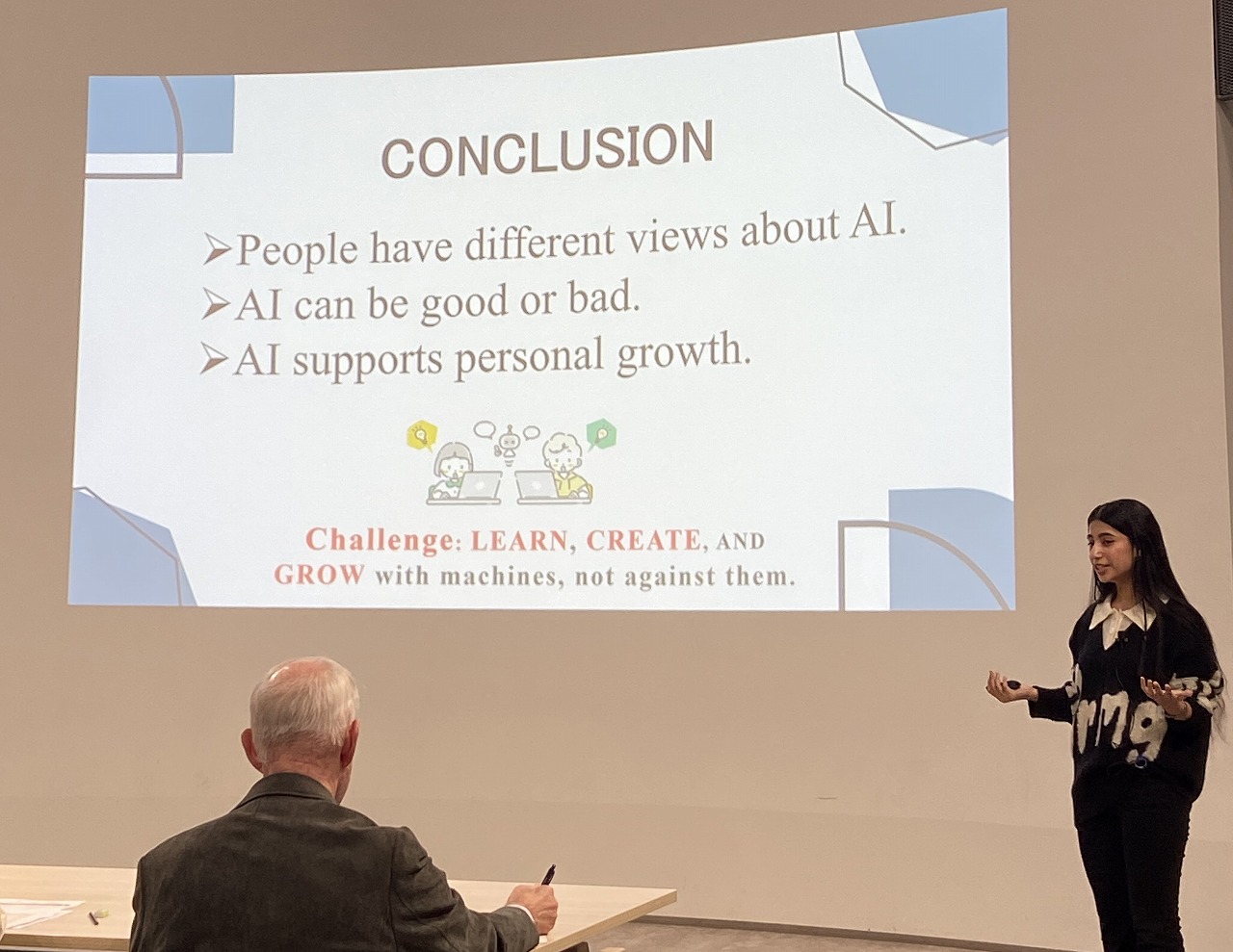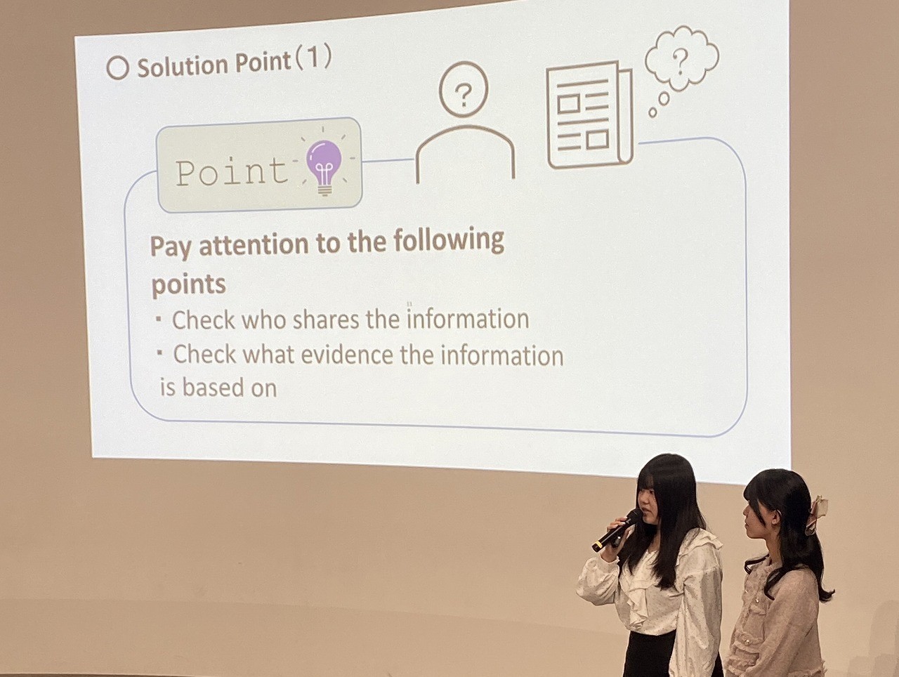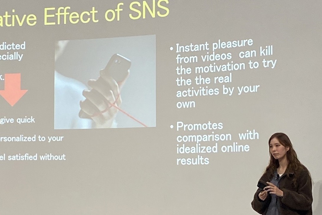 英語プレゼンテーションコンテストを実施しました 11月25日(水)に全学部生対象「2025年度 英語プレゼンテーションコンテスト<決勝>」を名古屋キャンパスたいほうにて開催いたしました 1年生の参加もあり、準備段階から熱心に練習を重ねてきたことが伝わる素晴らしい発表ばかりでした。 どの学生も堂々としており、語学への意欲と成長の姿が感じられるものでした。 結果 1位 How to "think" during the age of AI (外国語学部3年 E.T&K.N) 2位 The effect of SNS on our society (外国語学部2年 L.R)