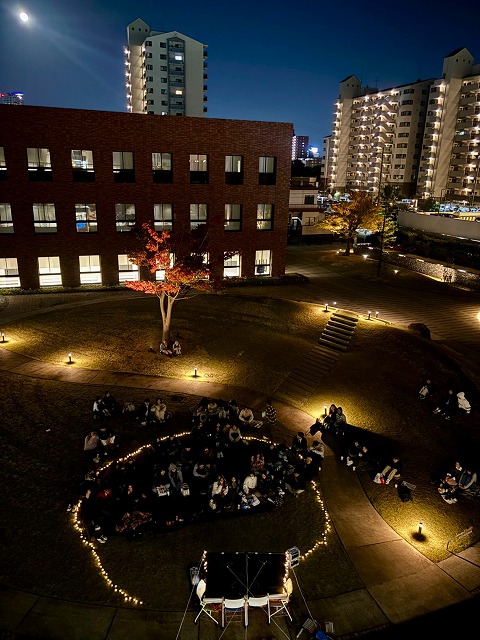 Movie Nightを実施しました 11月7日(金)夕暮れ時に野外映画鑑賞会を実施しました。 今回i-Loungeでは、北米で人気のイベント「野外映画鑑賞会」をi-Patio(アイ・パティオ)で体験してもらい、学部や学年を超えた交流に繋げることを目的として開催しました。 11月2日がメキシコの伝統行事「死者の日」でしたので、リメンバー・ミーを上映しました。 授業終了後にリフレッシュの時間を過ごしてもらうため、優しいライトアップの中、各々好きな形で、映画鑑賞を楽しみ、Movie Nightというアメリカの文化、そしてメキシコの伝統行事「死者の日」を感じることができました。 映画鑑賞中