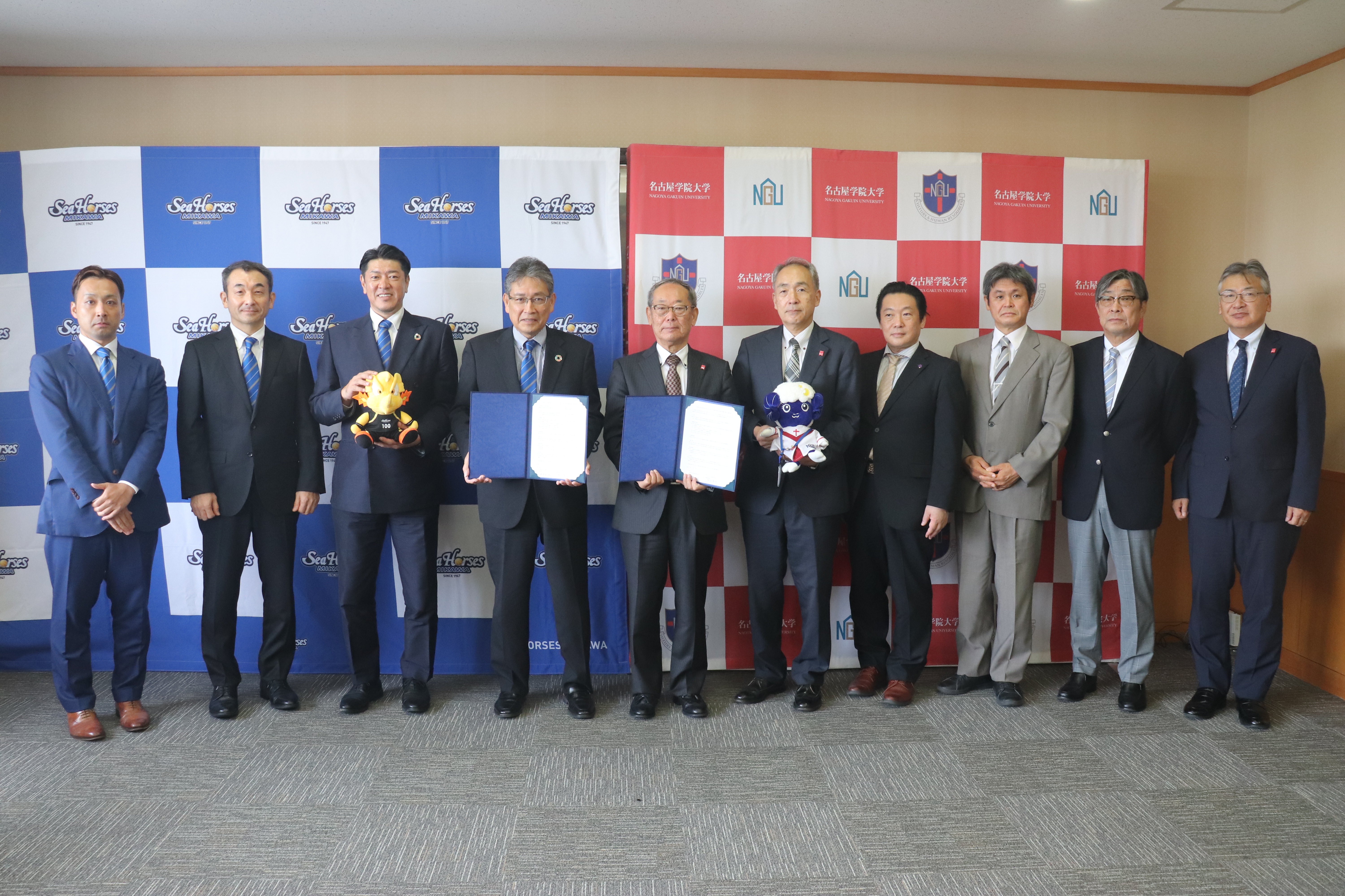 2024年8月30日(金)に、本学名古屋キャンパスで、シーホース三河株式会社と「相互連携に関する協定書」の締結式を開催し、協定の締結を行いました。