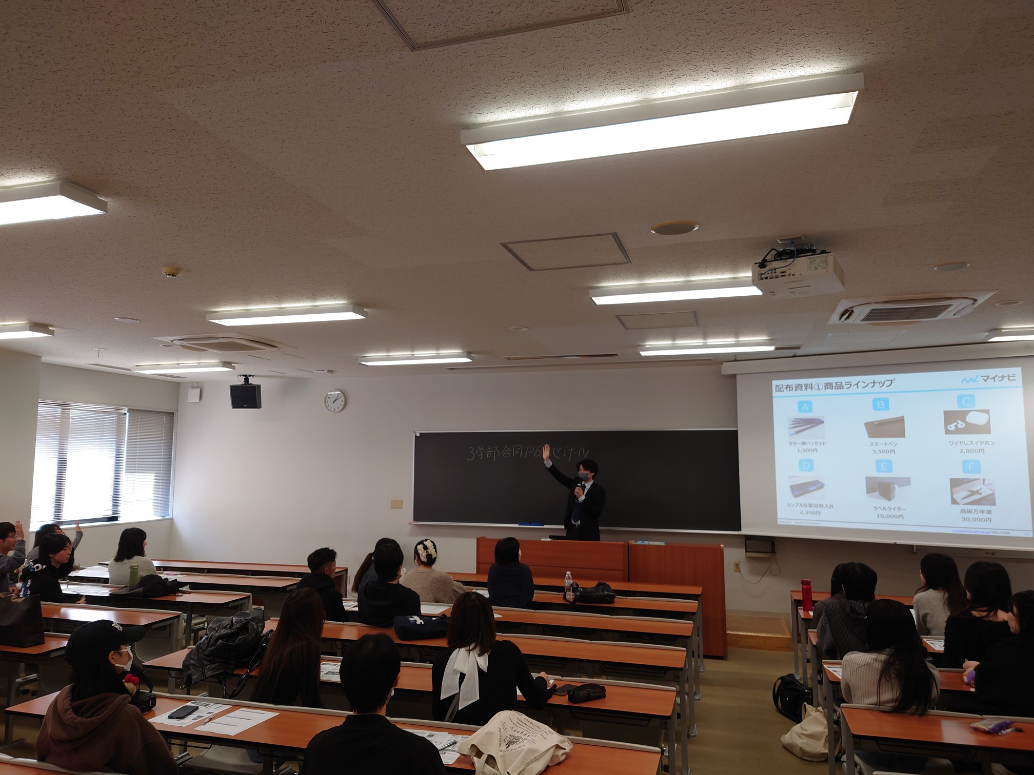 2025年10月28日(火)3限目、株式会社マイナビのご担当者様をお招きし、現代社会学部・水野清ゼミ、経営学部・髙木直人ゼミ(商学部)、法学部・鈴木隆ゼミの3年生が「3学部合同PBLゼミナール」に参加しました。