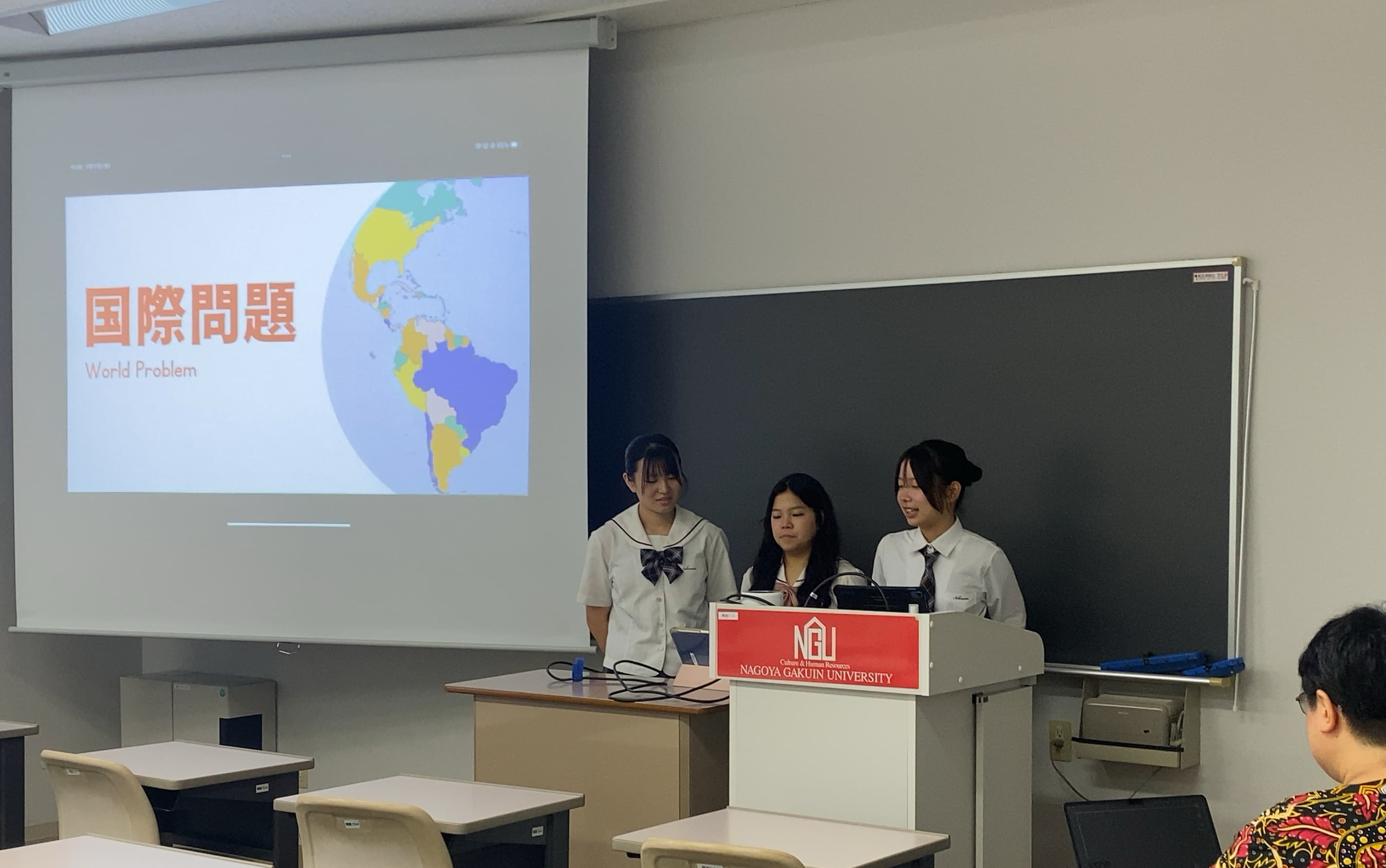 7月17日(木)に、名古屋経済大学市邨高等学校の2年生3人が来学され、探究活動の成果を発表してくださいました。