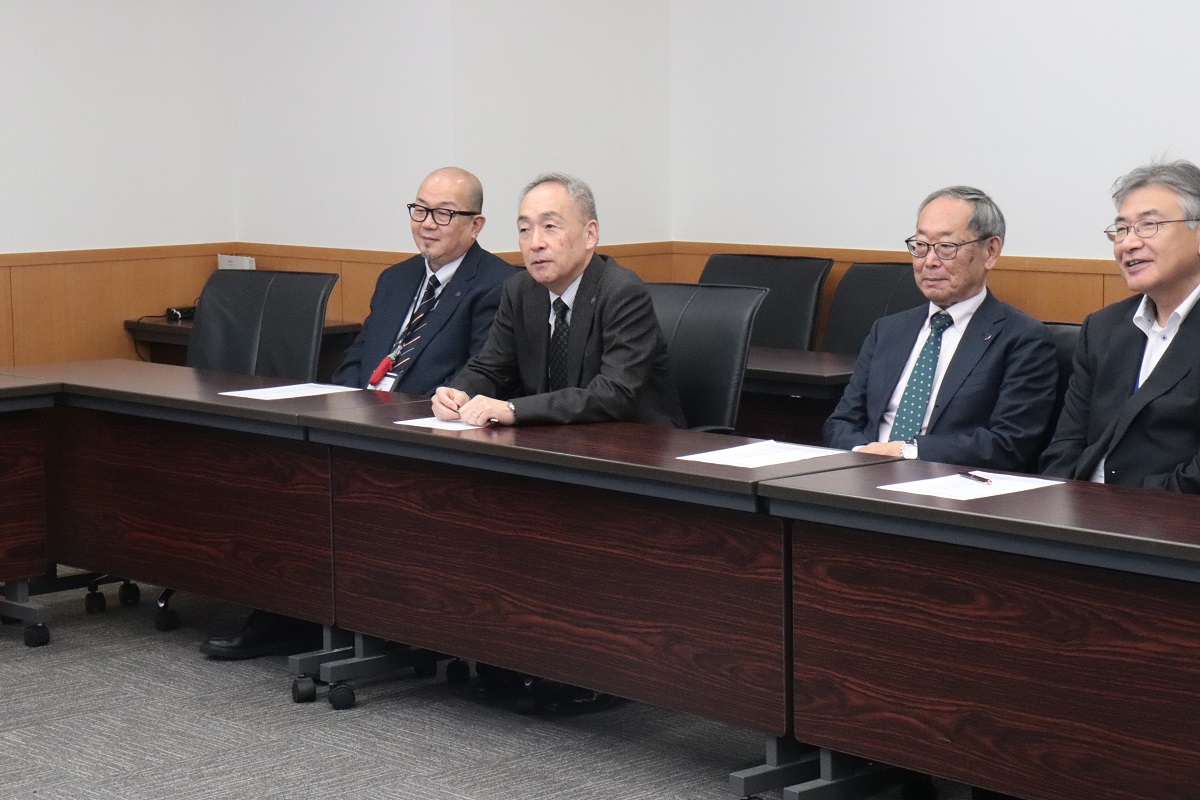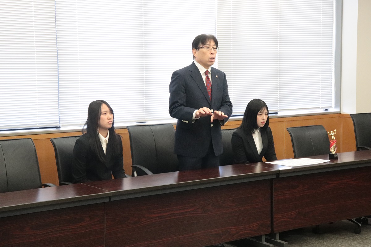 2025年10月28日(火)、女子バレーボール部が第160回東海大学男女バレーボールリーグ戦 秋季大会の結果を西中利也理事長、赤楚治之学長に報告しました。女子バレーボール部からは、箕輪憲吾監督、キャプテンの森藤優選手、河野久愛選手が参加しました。